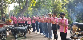 พิธีไหว้ศาลพระพิฆเนศพระวิษณุกรรม เพื่อสักการะสิ่งศักดิ์สิทธิ์ประจำมหาว...