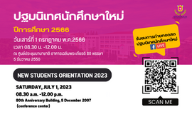 ขอเชิญเข้าร่วมกิจกรรมปฐมนิเทศนักศึกษาใหม่ 2566...