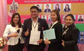Gives a congratulatory gift to Mrs. Pongphan Palapong, the owner and ...