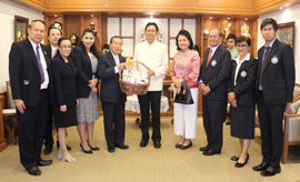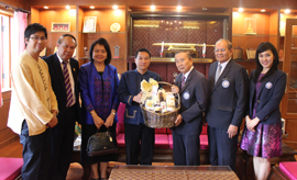อาจารย์อรัญญา เวียนทอง หัวหน้าศูนย์สื่อสารองค์กรพร้อมคณะ เข้ามอบกระเช้...