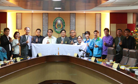 อาจารย์ณรงค์ ชวสินธุ์ อธิการบดี รวมถึงผู้บริหารให้การต้อนรับคณะผู้บริห...