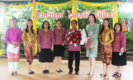 อาจารย์อรัญญา เวียนทอง หัวหน้าศูนย์สื่อสารองค์กร มอบช่อดอกไม้แสดงควา...