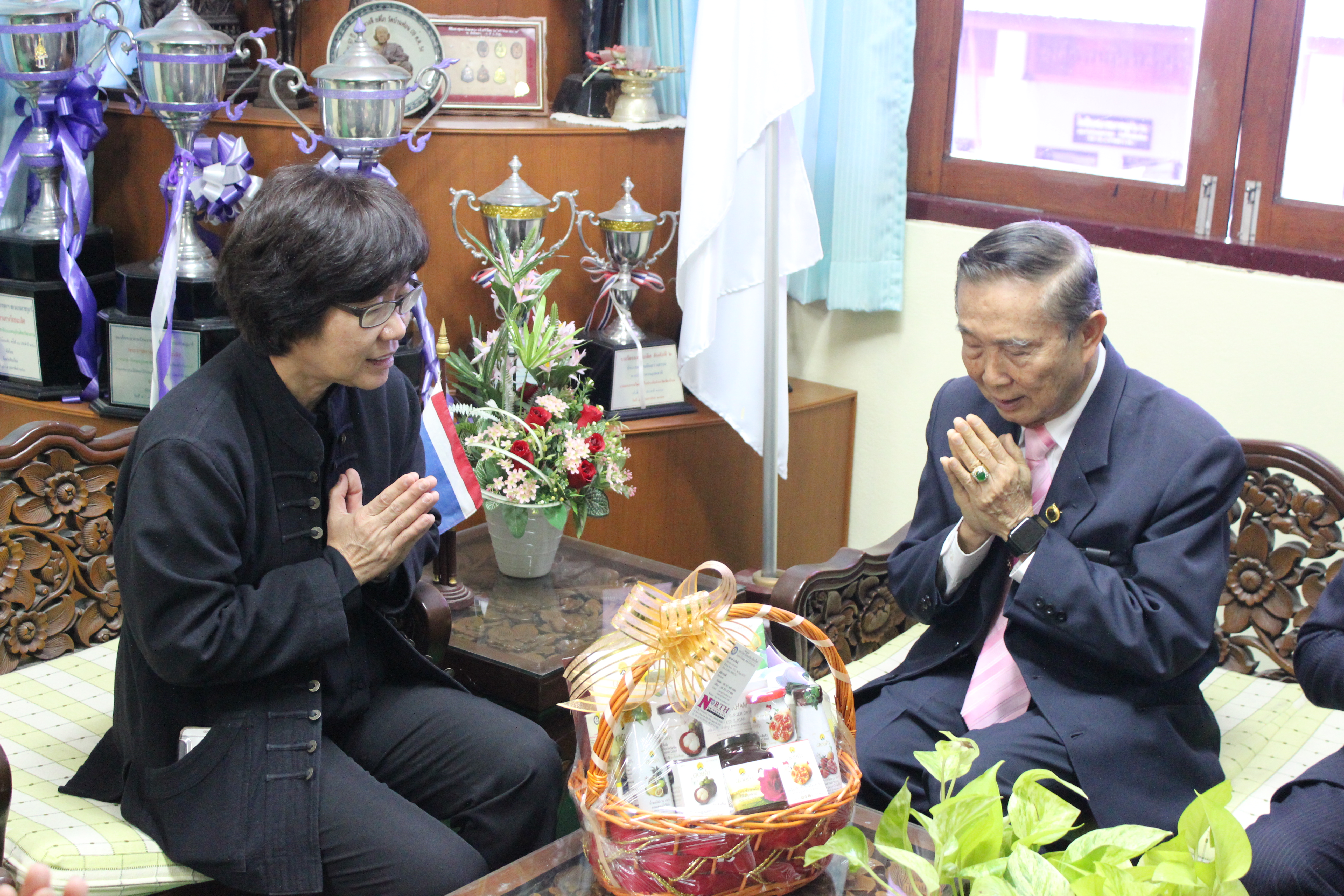 อาจารย์ณรงค์ ชวสินธุ์ อธิการบดีมหาวิทยาลัยนอร์ท-เชียงใหม่ นำคณะผู้บริหาร เข้ามอบกระเช้าสวัสดีปีใหม่ นางสาวนิติยา พงษ์พานิช นายอำเภอหางดง เนื่องในโอกาสวันขึ้นปีใหม่ 2561 ณ ที่ว่าการอำเภอหางดง จ.เชียงใหม่