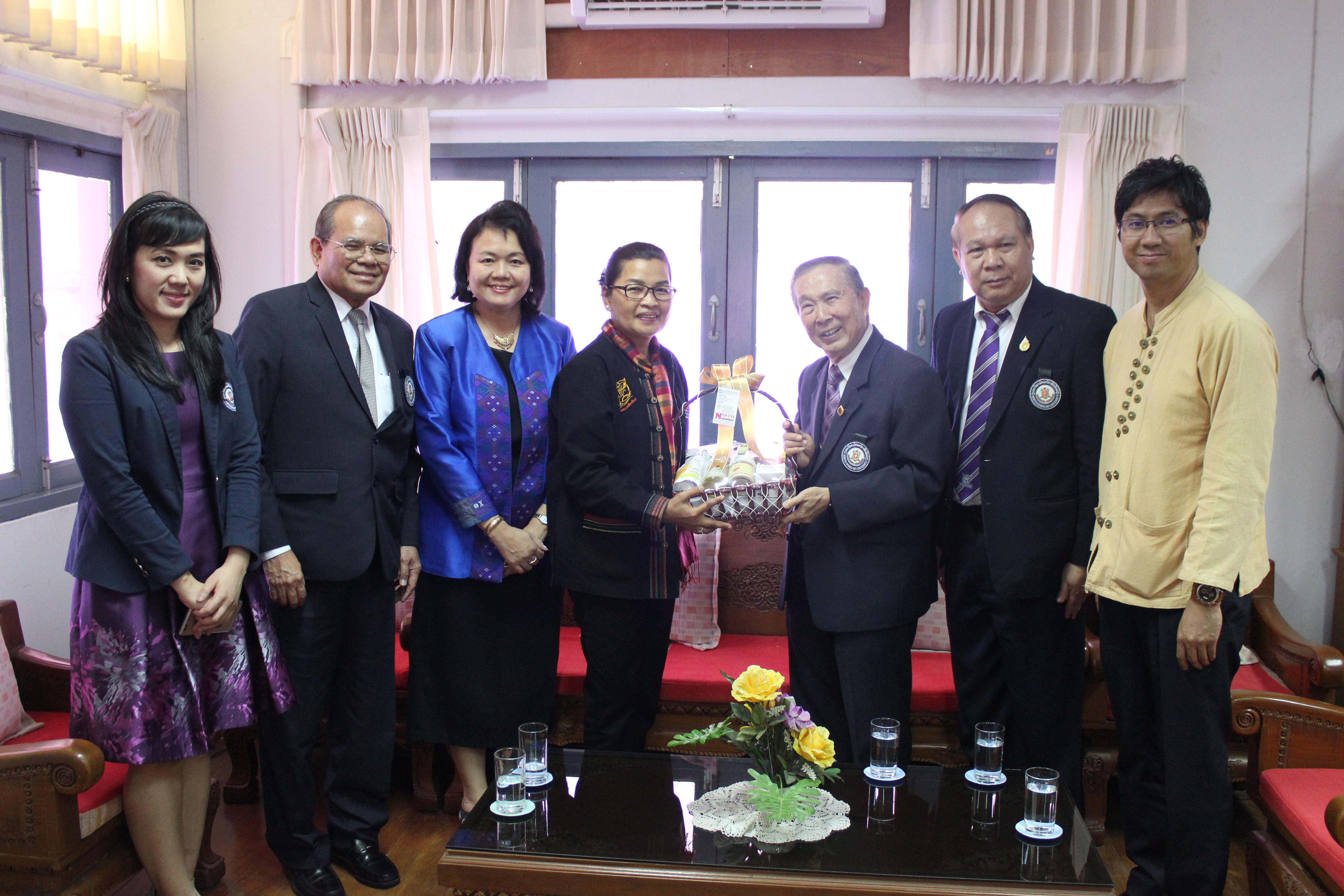 หน้าแรก >> อาจารย์ณรงค์ ชวสินธุ์ อธิการบดีมหาวิทยาลัยนอร์ท-เชียงใหม่ นำคณะผู้บริหาร เข้ามอบกระเช้าสวัสดีปีใหม่ นางสาวภัทราพร ลายจุด นายอำเภอสันป่าตอง