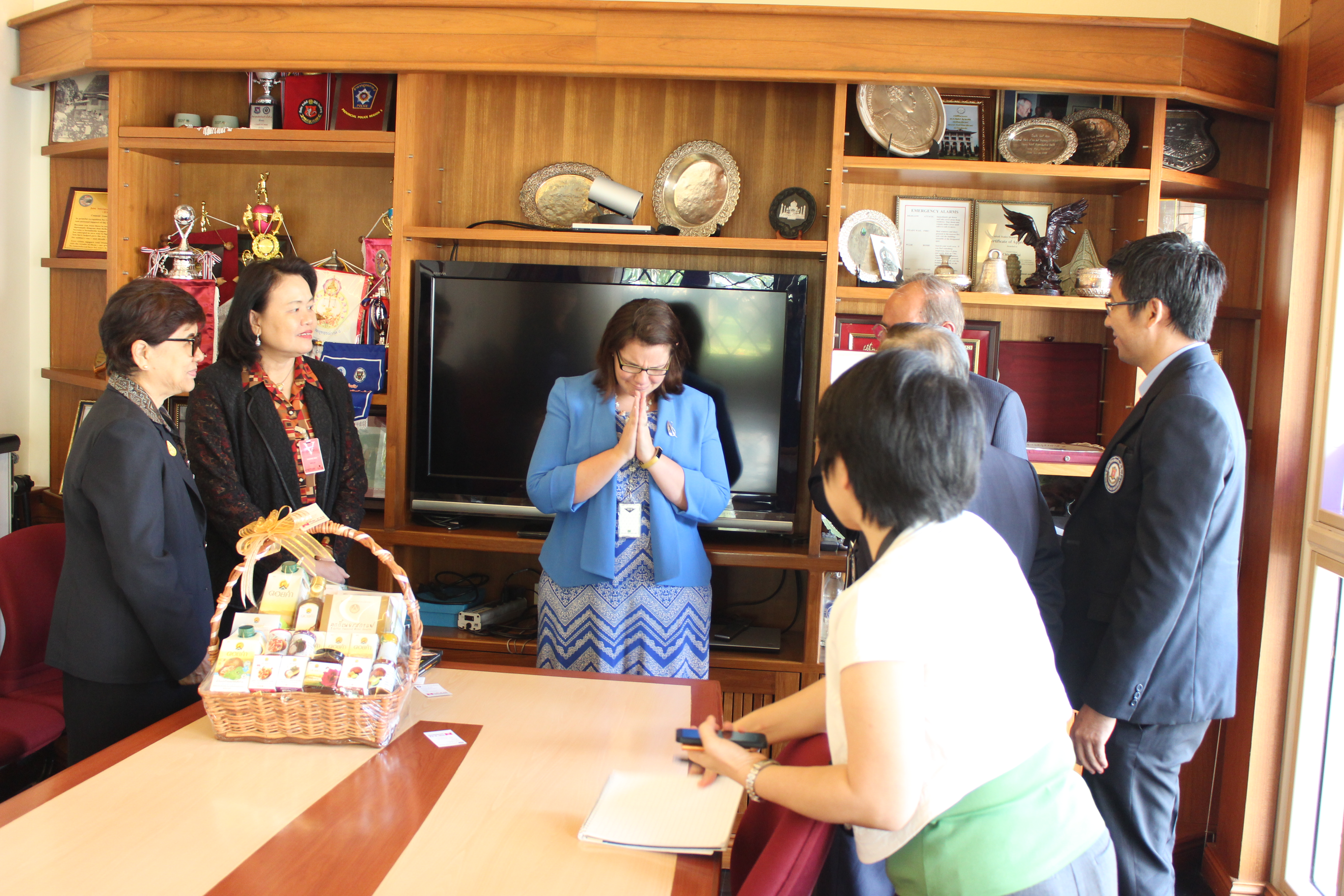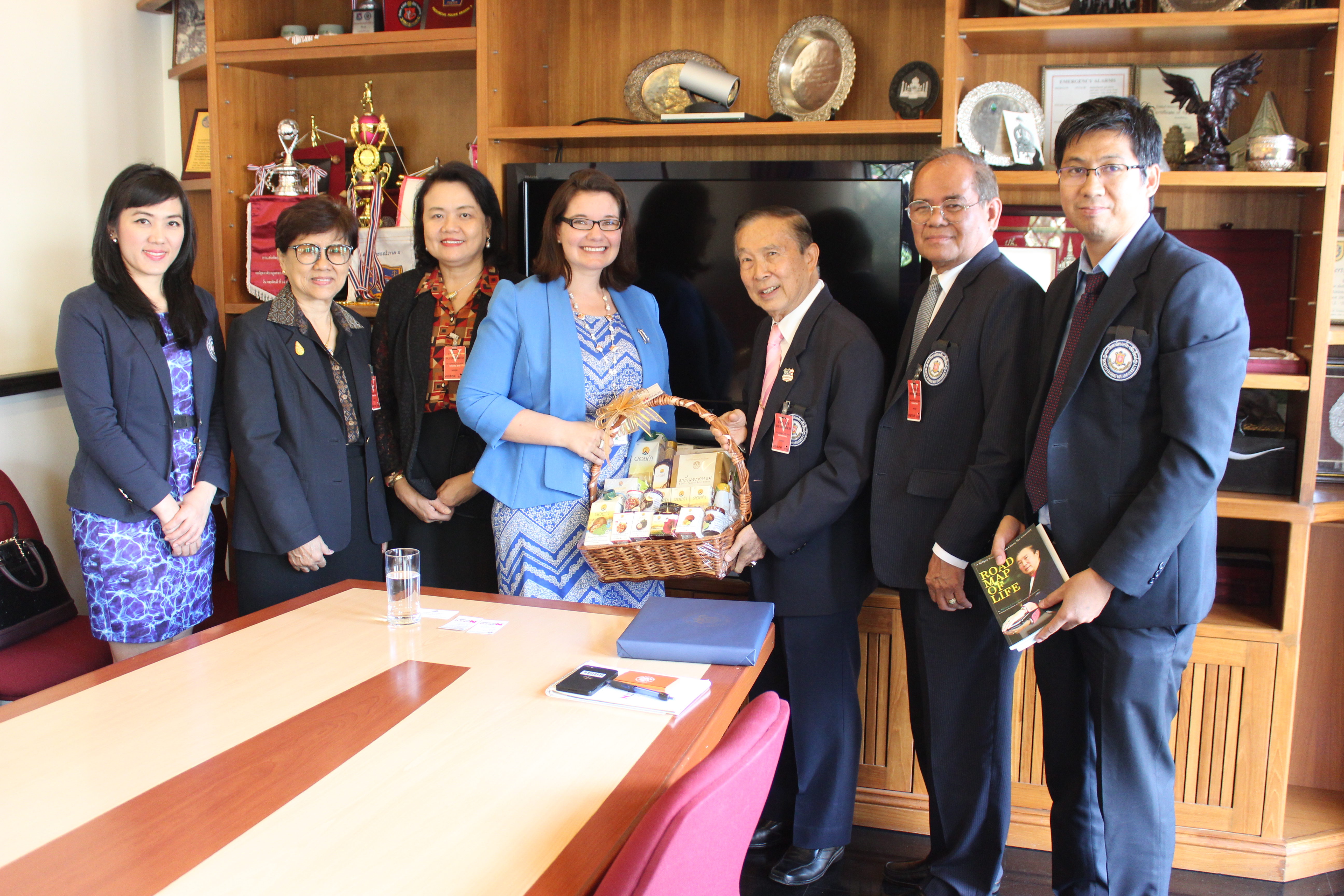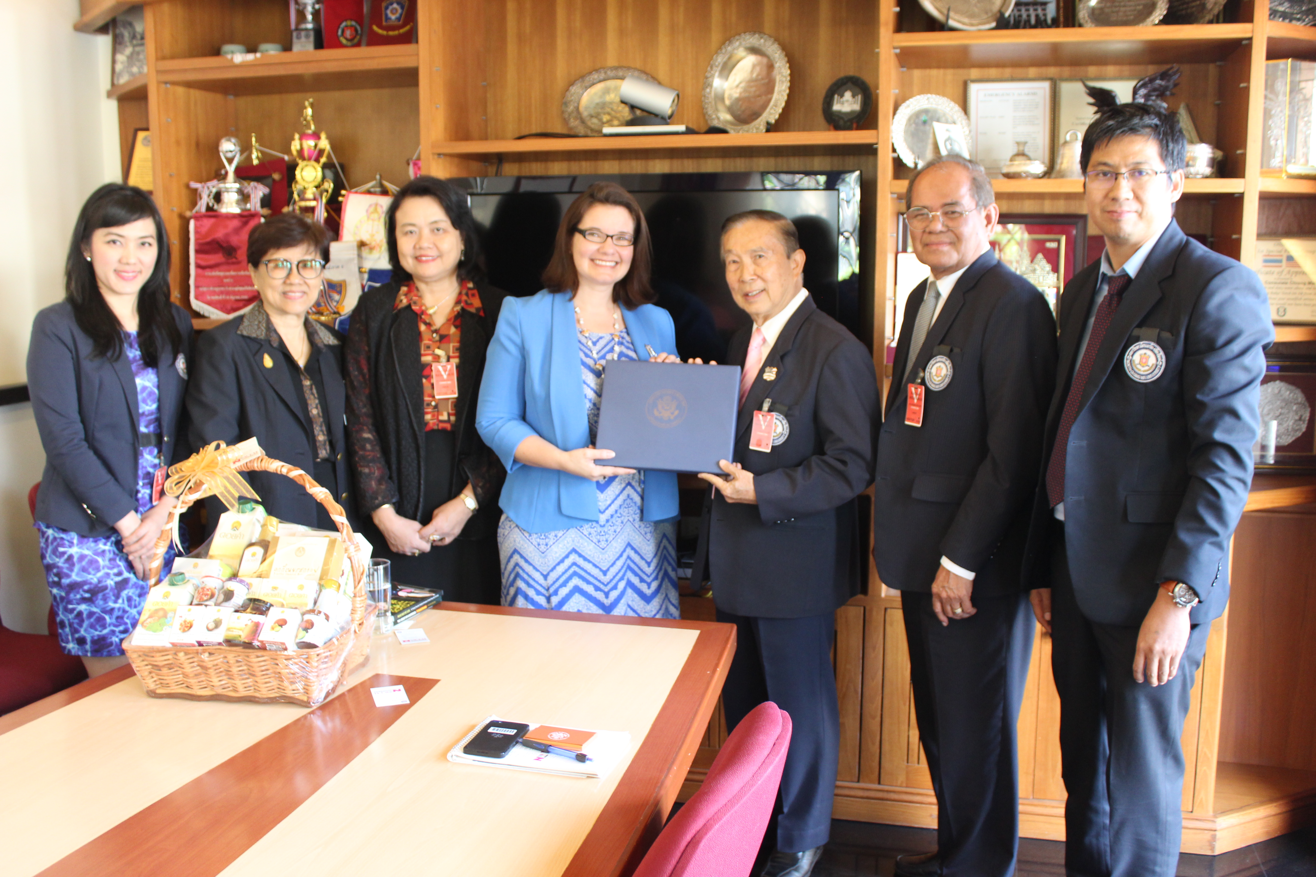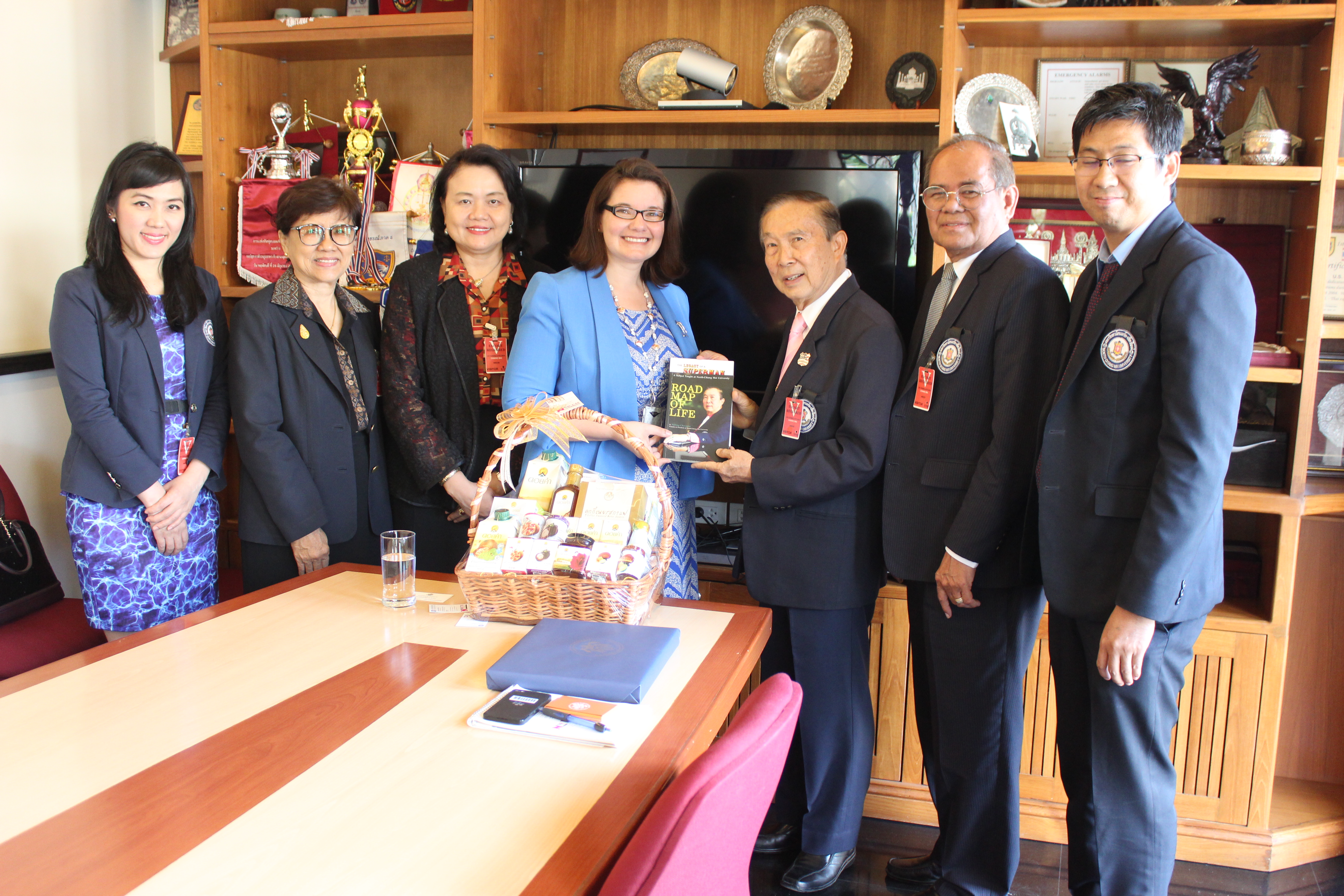 อาจารย์ณรงค์ ชวสินธุ์ อธิการบดีมหาวิทยาลัยนอร์ท-เชียงใหม่ นำคณะผู้บริหาร เข้ามอบกระเช้าสวัสดีปีใหม่ นางสาวเจนนิเฟอร์ บาร์นสเคอร์น กงสุลฝ่ายการเมืองและเศรษฐกิจ สถานกงสุลใหญ่สหรัฐอเมริกา ประจำจังหวัดเชียงใหม่ เนื่องในโอกาสวันขึ้นปีใหม่ 2561 ณ กงสุลใหญ่สหรัฐอเมริกา ประจำจังหวัดเชียงใหม่