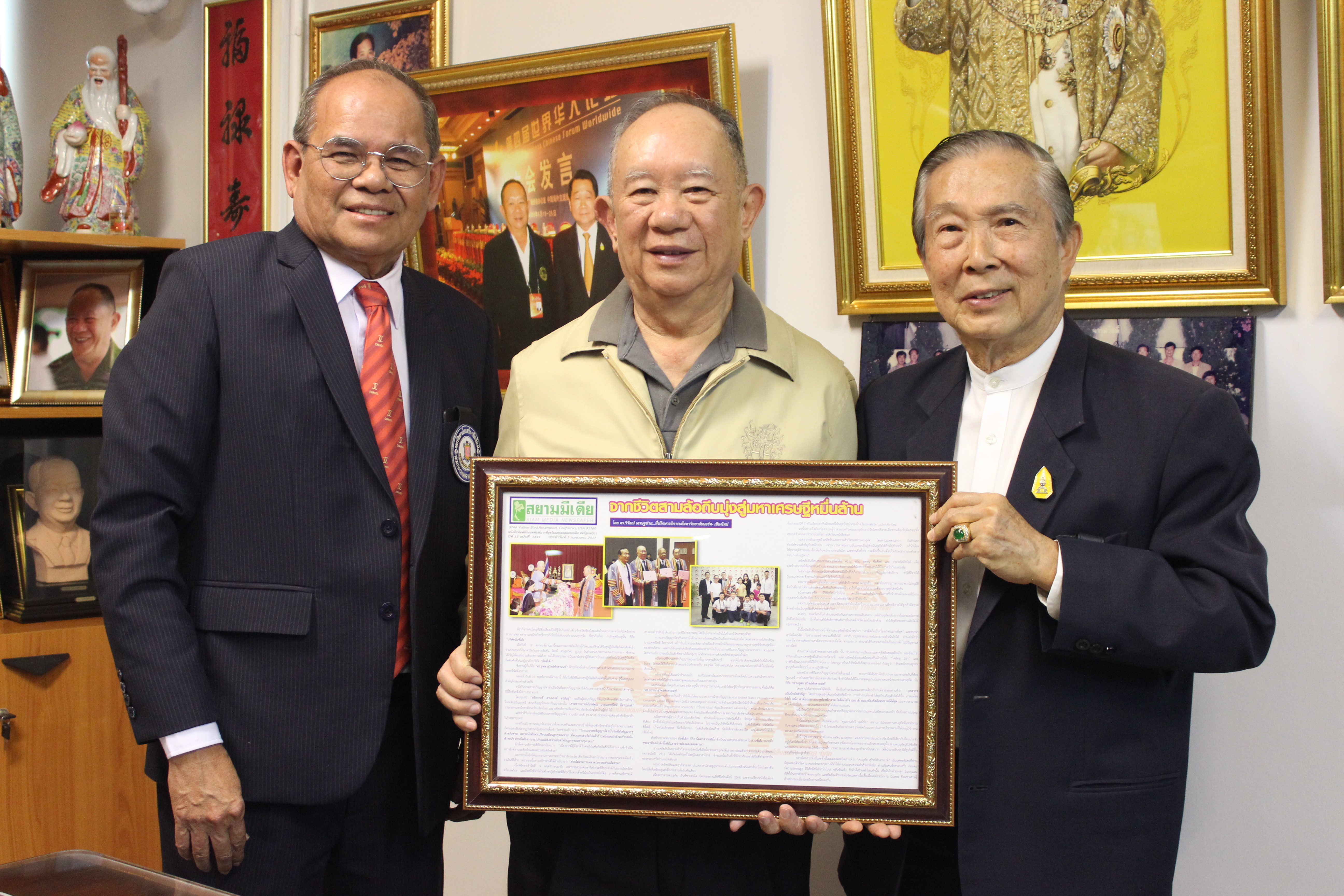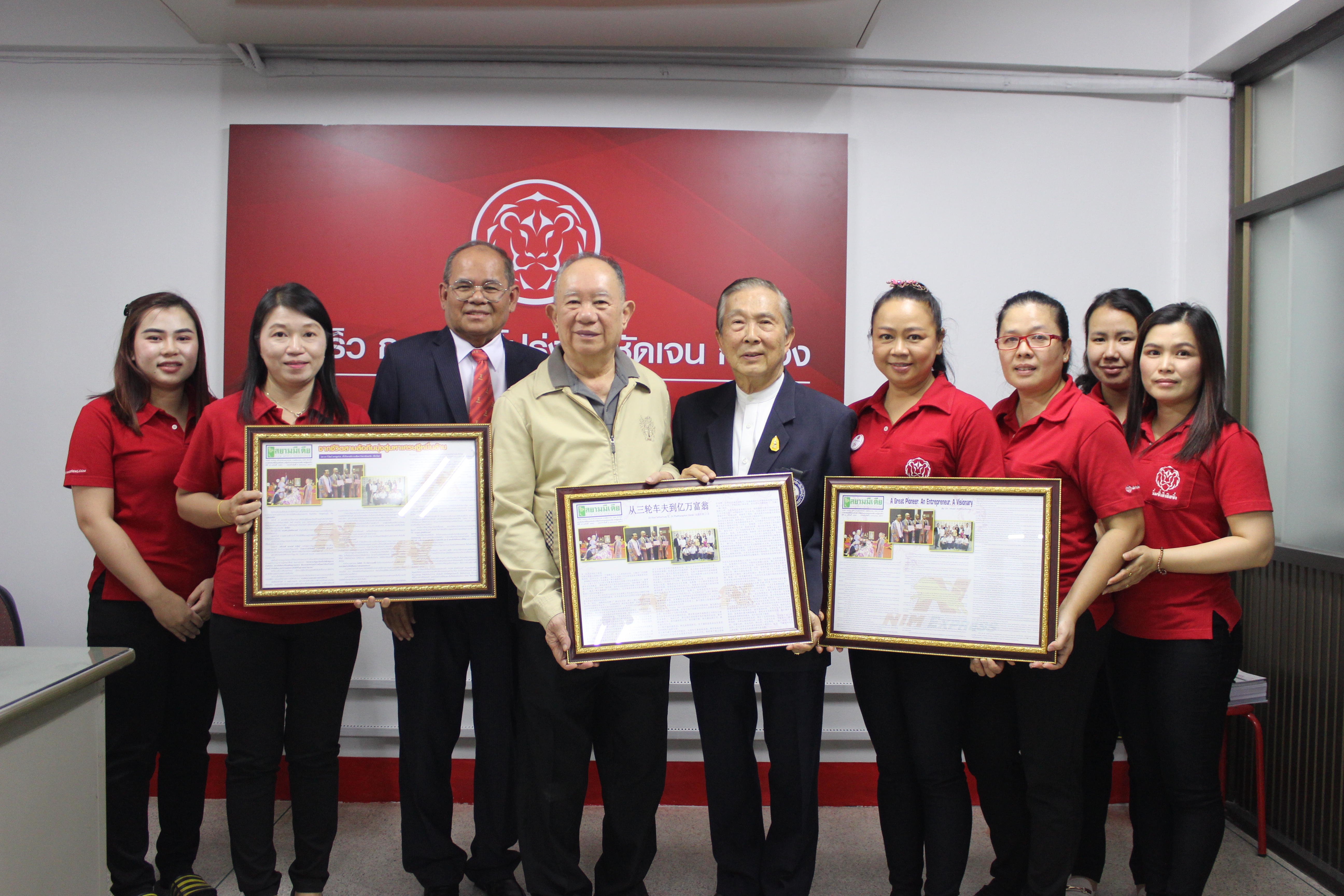 หน้าแรก >> อาจารย์ณรงค์ ชวสินธุ์ อธิการบดี และ ดร.วิวัฒน์ เศรษฐช่วย ที่ปรึกษาอธิการบดี มอบบทความเกี่ยวกับชีวิตของ ดร.อุทัต สุวิทย์ศักดานนท์ ที่บรรจุใส่กรอบอันสวยงาม โดยบทความมีทั้งภาษาไทย ภาษาอังกฤษและภาษาจีน ณ บริษัท นิ่มซีเส็ง ลิสซิ่ง