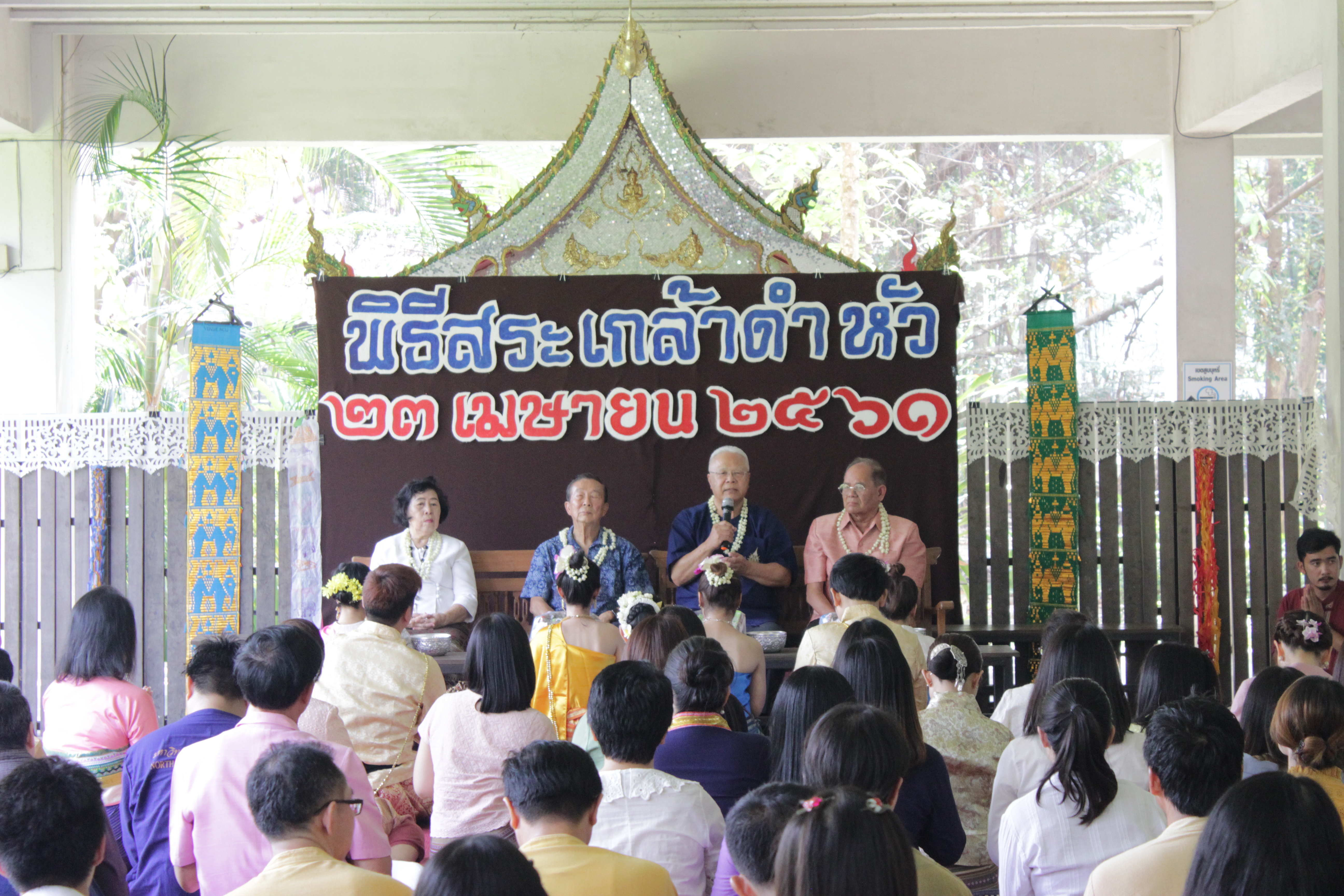 หน้าแรก >> ภาพบรรยากาศพิธีสระเกล้าดำหัวอธิการบดีและผู้อาวุโส มหาวิทยาลัยนอร์ท-เชียงใหม่ ประจำปี 2561