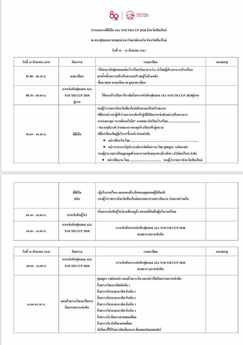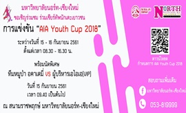 มหาวิทยาลัยนอร์ท - เชียงใหม่ เชิญร่วมงาน AIA Youth Cup 2018 ระหว่าง วันที่ 15 - 16 กันยายน 2561 ตั้งแต่เวลา 8.30 - 16.30 น. พร้อมฟุตบอลนัดพิเศษ ระหว่าง