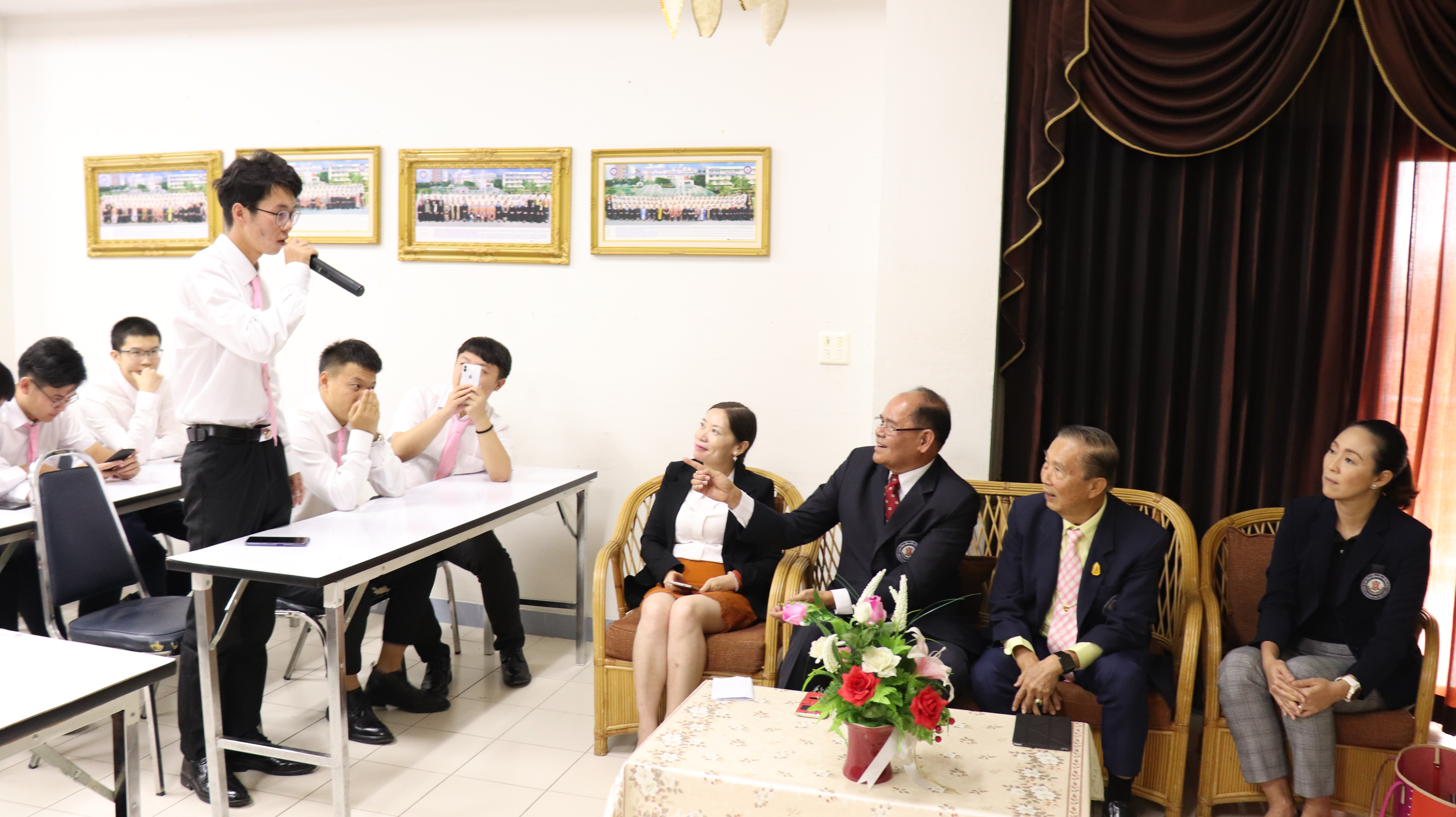 ซึ่งในช่วงเช้านั้น อธิการบดีและคณะผู้บริหารได้กล่าวให้โอวาทให้กับนักศึกษาจีนที่ห้องรัฐมนตรีและเปิดงานปฐมนิเทศ