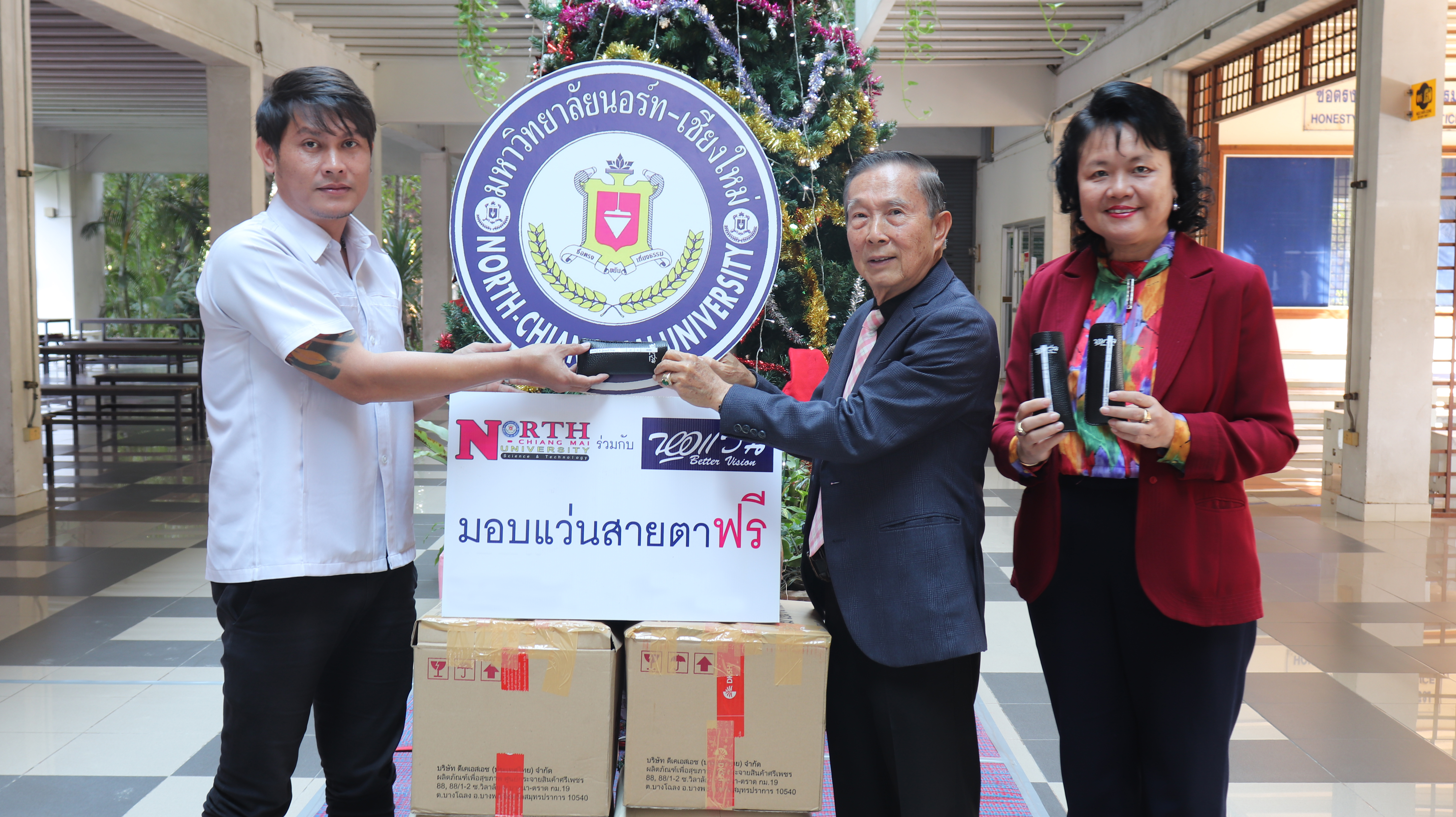 วันพุธที่ 26 ธันวาคม 2562 อาจารย์ณรงค์ ชวสินธุ์ อธิการบดีมหาวิทยาลัยนอร์ท-เชียงใหม่ พร้อมด้วย ผศ. บงกช สุทัศน์ ณ อยุธยา ผู้ช่วยอธิการบดี มหาวิทยาลัยนอร์ท - เชียงใหม่ รับมอบแว่นสายตาจาก บริษัท หอแว่นกรุ๊ป จำกัด ณ อาคารอธิการบดี มหาวิทยาลัยนอร์ท-เชียงใหม่ จำนวน 240 อัน เพื่อส่งมอบต่อให้สูงอายุที่มีปัญหาทางด้านสายตาในเขตพื้นที่อำเภอหางดง จังหวัดเชียงใหม่ เนื่องในวันคล้ายวันสถาปนามหาวิทยาลัยนอร์ท-เชียงใหม่ ครั้งที่ 19