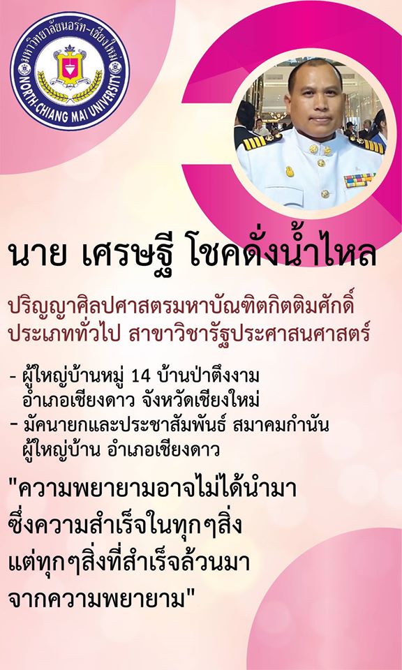 คณาจารย์และนักศึกษานอร์ท-เชียงใหม่ จนประสบความสำเร็จ ในฐานะผู้นำชุมชน พื้นที่บ้านป่าตึงงาม ได้แก่