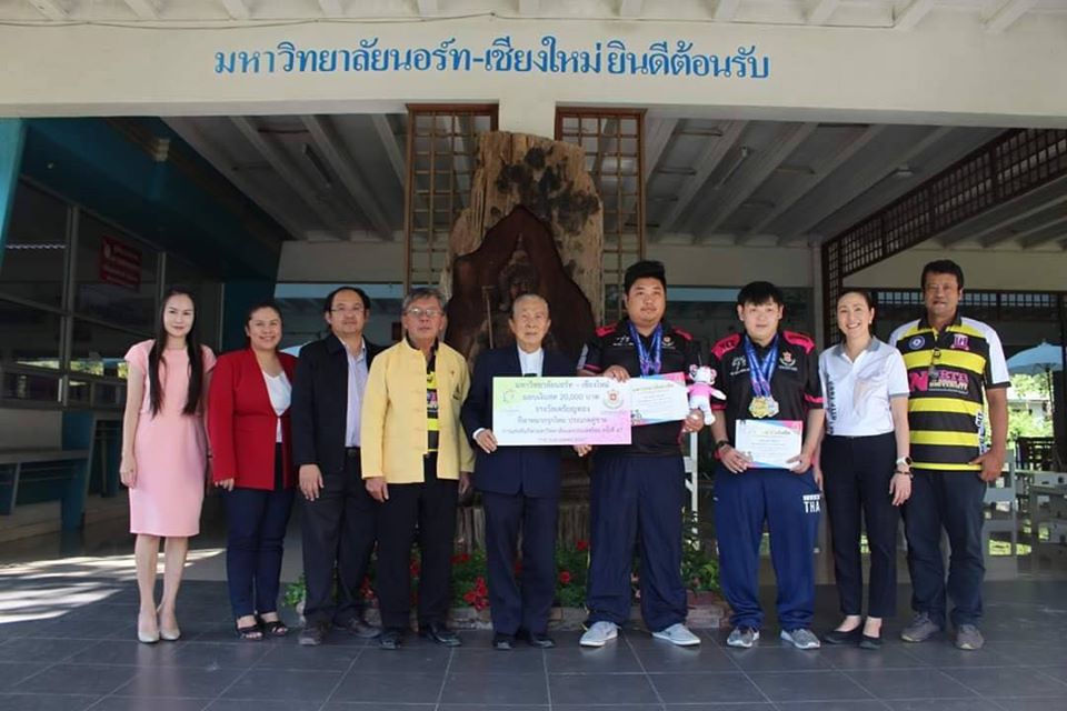 หน้าแรก >> อาจารย์ณรงค์ ชวสินธุ์ อธิการบดี มหาวิทยาลัยนอร์ท-เชียงใหม่ ร่วมแสดงความชื่นชมยินดี และมอบรางวัลให้กับ ทีมนักกีฬาหมากกระดาน
