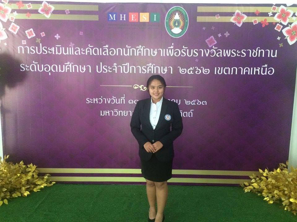 นางสาวอโนชา ลาขุมเหล็ก ชั้นปีที่ 3 สาขาการจัดการการท่องเที่่ยวและการบริการ คณะบริหารธุรกิจ เข้าร่วมการประเมินและคัดเลือกนักศึกษา เพื่อรับรางวัลพระราชทาน ระดับอุดมศึกษา ประจำปีการศึกษา 2562 เขตภาคเหนือ วันอังคารที่ 11 มีนาคม 2563 ณ ห้องประชุมพิชัยนที ชั้น 4 อาคาร ICIT มหาวิทยาลัยราชภัฏอุตรดิตถ์
