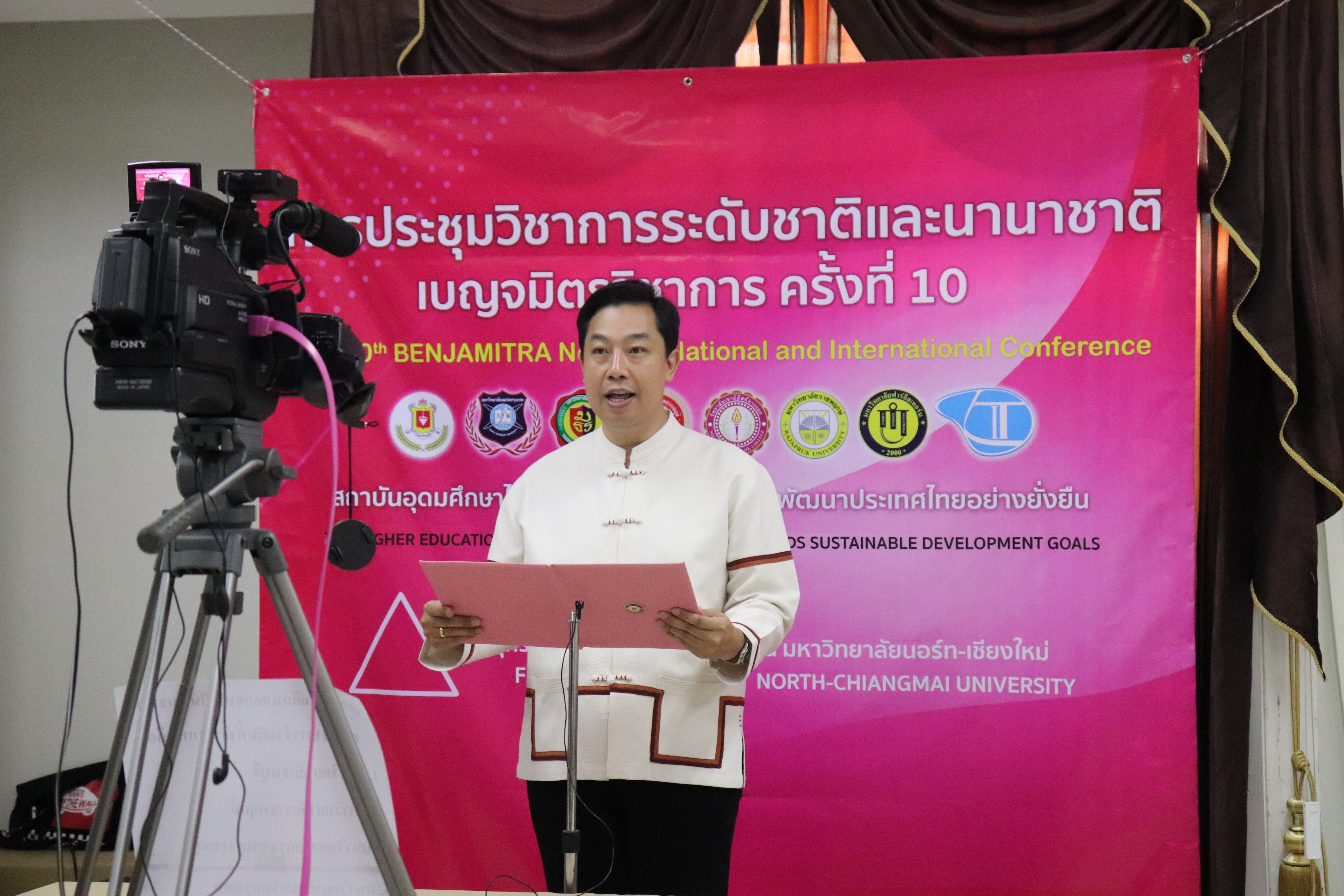 กระผมในฐานะ อธิการบดีมหาวิทยาลัยนอร์ท-เชียงใหม่ ซึ่งรับหน้าที่เป็นเจ้าภาพหลักในการจัดประชุมวิชาการระดับชาติและระดับนานาชาติเบญจมิตรวิชาการ ครั้งที่ 10 ณ มหาวิทยาลัยนอร์ท-เชียงใหม่ ซึ่งนับเป็นโอกาสพิเศษยิ่ง เนื่องจากตรงกับการสถาปนาสถาบัน ครอบรอบ ปีที่ 20 นับเป็นเกียรติอย่างยิ่ง ที่ได้ทำหน้าที่ ประธานในพิธีเปิดการประชุมวิชาการระดับชาติและระดับนานาชาติเบญจมิตรวิชาการ ครั้งที่ 10 ว่าด้วยกรอบ “สถาบันอุดมศึกษาไทย : พลังขับเคลื่อนเพื่อการพัฒนาประเทศไทยอย่างยั่งยืน” แม้ว่ามีความจำเป็นต้องปรับเปลี่ยนการนำเสนอผลงานวิชาการทั้งภาคบรรยาย และภาคโปสเตอร์ ให้เป็นรูปแบบออนไลน์ทั้งสิ้น เพื่อตอบสนองนโยบายของภาครัฐ กล่าวคือ เมื่อรัฐบาลตัดสินใจประกาศสถานการณ์ฉุกเฉินเพื่อควบคุมโรคติดเชื้อไวรัสโคโรน่า 2019 หรือ COVID-19 เพื่อเพิ่มความเข้มข้นของมาตรการการเพิ่มระยะห่างทางสังคม (Social Distancing) จึงจำเป็นต้องงดการประชุมรวมตัวกันของคนจำนวนมาก และร่วมสนับสนุนโครงการของศูนย์บริหารสถานการณ์การแพร่ระบาดของโรคติดเชื้อไวรัสโคโรนา 2019 หรือที่คุ้นเคยกันดีในนาม ศบค. ซึ่งมี พลเอกประยุทธ์ จันทร์โอชา นายกรัฐมนตรีเป็นประธาน และ นายแพทย์ทวีศิลป์ วิษณุโยธิน ทำหน้าที่โฆษก ด้วยการ อยู่บ้าน หยุดเชื้อ เพื่อชาติ นั่นเอง