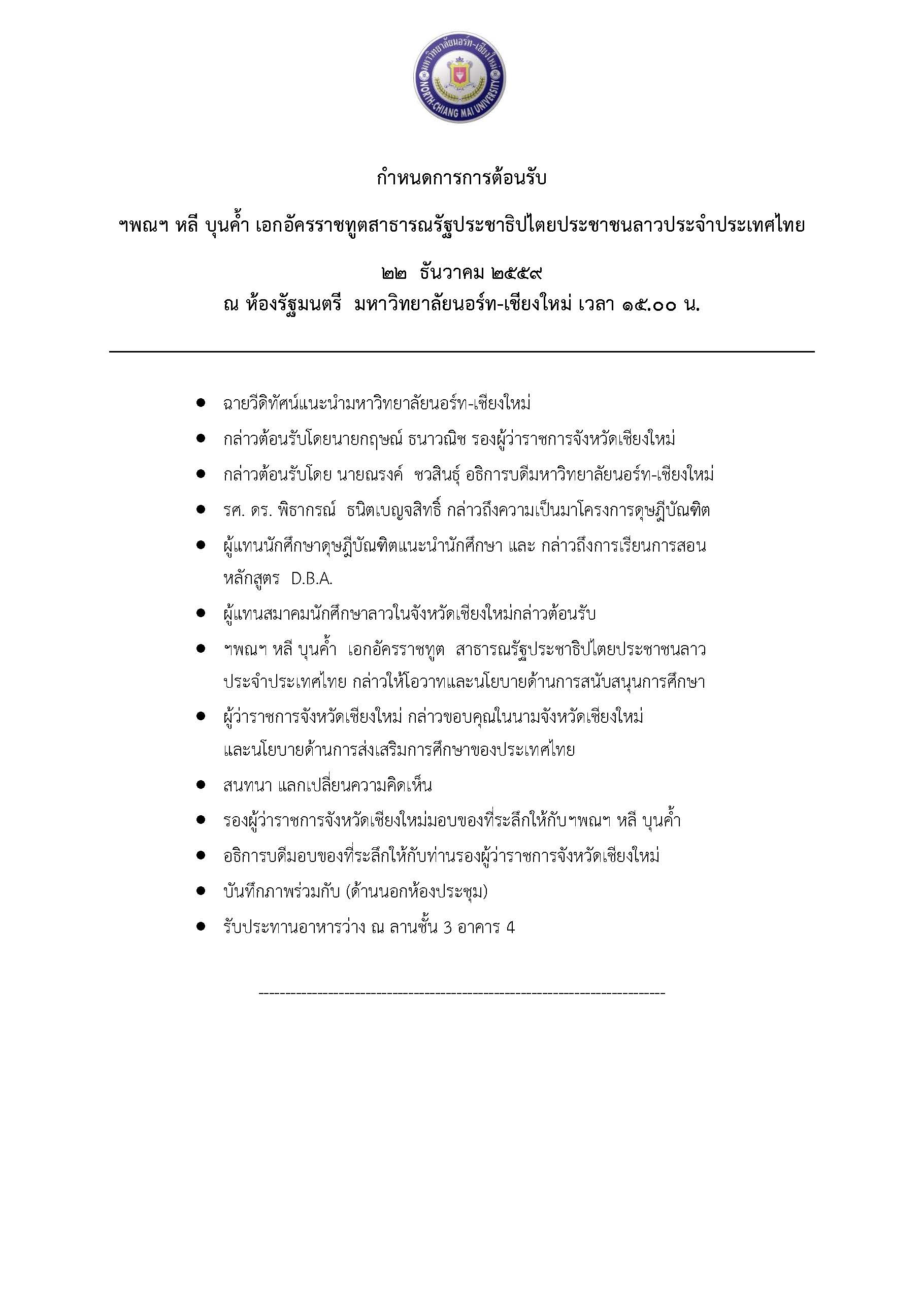 >> ต้อนรับเอกอัครราชทูตสาธารณรัฐประชาธิปไตยประชาชนลาวประจำประเทศไทย วันที่ 22 ธันวาคม 2559