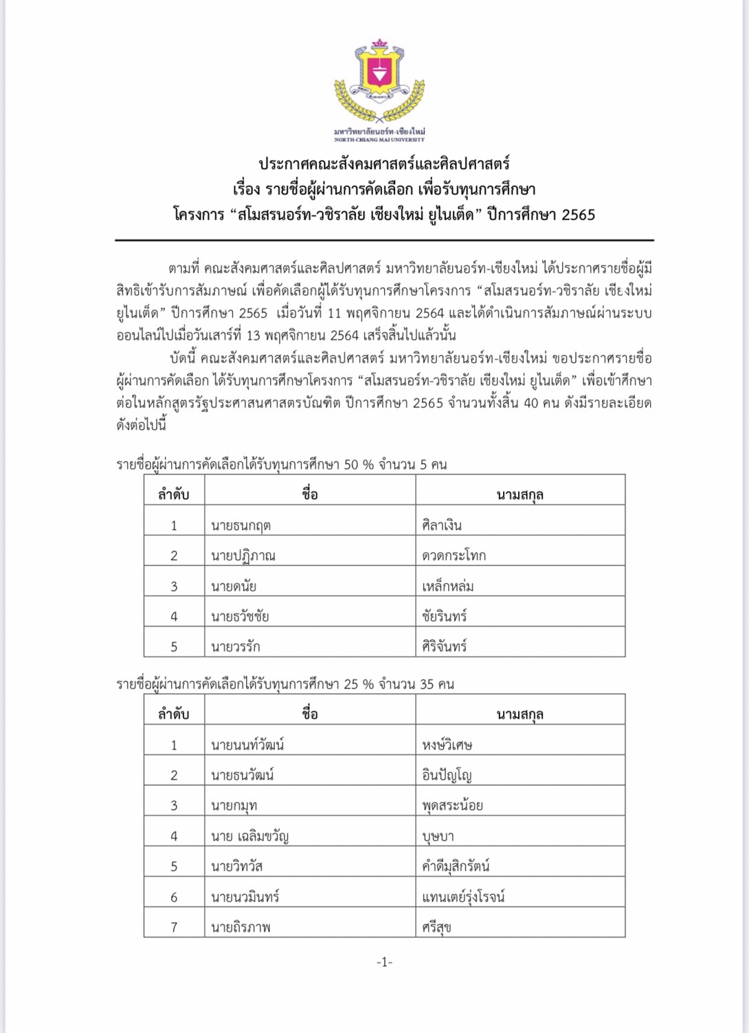 ผู้ที่ผ่านการคัดเลือกการให้ทุนการศึกษา