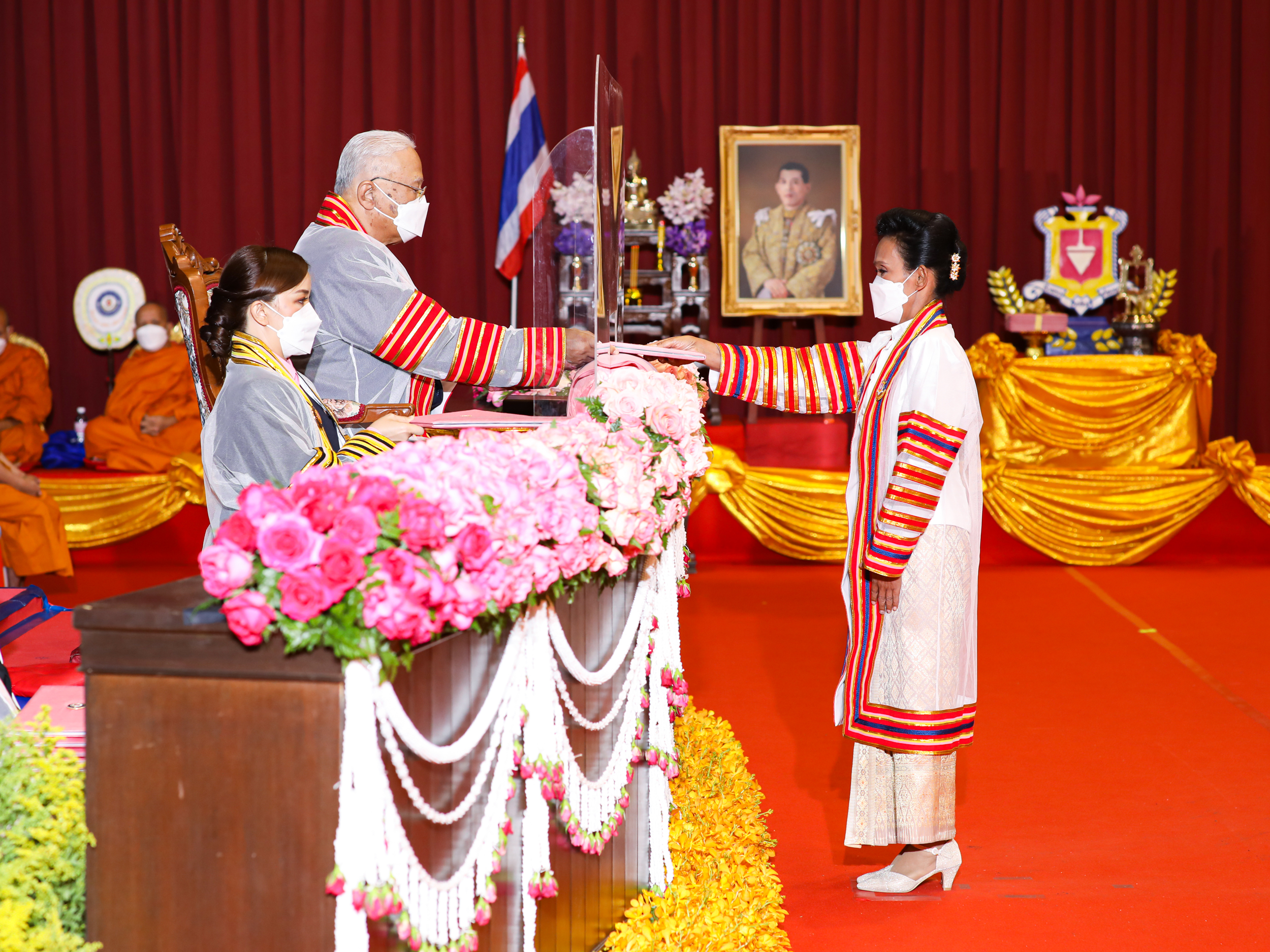 พิธีประสาทปริญญาบัตรครั้งนี้ มีผู้สำเร็จการศึกษาทั้งสิ้น 955 คน ในปีนี้มีการมอบปริญญาดุษฎีบัณฑิตกิตติมศักดิ์จำนวน 2 ท่าน คือปริญญาศิลปศาสตรดุษฎีบัณฑิตกิตติมศักดิ์ สาขาวิชาหลักสูตรและการสอน แด่ นายณรงค์ศักดิ์ ภูมิศรีสะอาด รองกรรมการผู้จัดการ พ.ศ.2556-2564 ที่ปรึกษาคณะเจ้าหน้าที่บริหาร พ.ศ.2564-ปัจจุบัน บริษัท ซีพี ออลล์ จำกัด (มหาชน) และ ปริญญาศิลปศาสตรดุษฎีบัณฑิตกิตติมศักดิ์ สาขาวิชารัฐประศาสนศาสตร์ แด่ นางพยง แสนกมล เจ้าของกิจการ ฟาร์มเห็ด “ครูพยง-อนันต์”