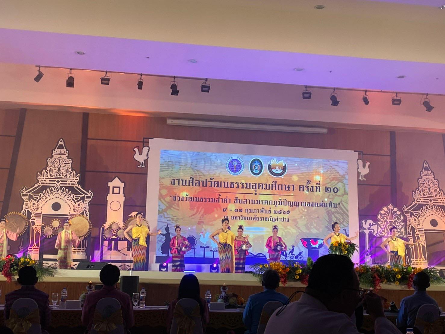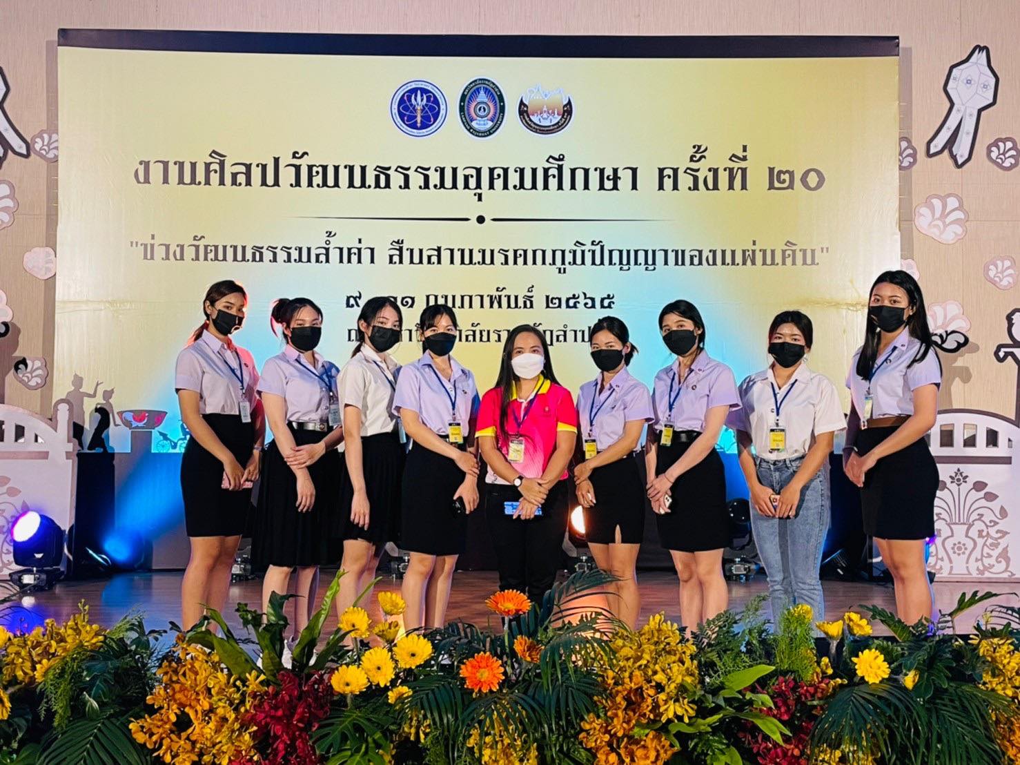สำนักกิจการนักศึกษา โดย นางสาวรุ่งทิวา เต็มแว่น รองผู้อำนวยการสำนักกิจการนักศึกษา นำนักศึกษา คณะบริหารธุรกิจ สาขาการจัดการธุรกิจการบิน เข้าร่วมงานศิลปวัฒนธรรมอุดมศึกษา ครั้งที่ 20 “ข่วงวัฒนธรรมล้ำค่า สืบสานมรดกภูมิปัญญาของแผ่นดิน” โดยนำการแสดงชุด “ฟ้อนขันดอกล้านนา” ประยุกต์ : เป็นการร่ายรำเพื่อบูชาสิ่งต่าง ๆ อันเป็นศิลปะล้านนาของไทยฝ่ายเหนือ ณ มหาวิทยาลัยราชภัฏลำปาง