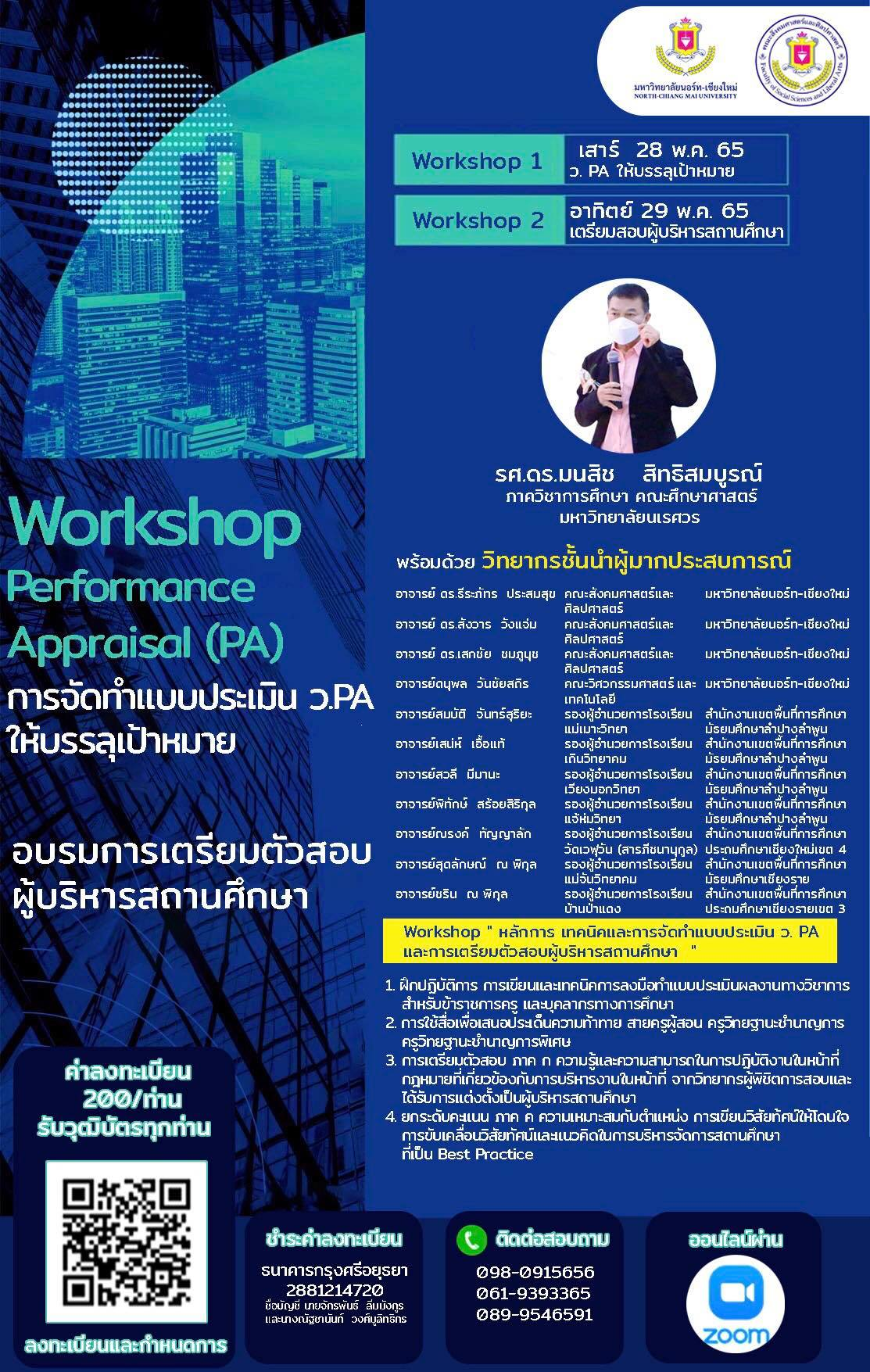 **workshop 1 ด้านการจัดทำผลงานทางวิชาการ การประเมินตำแหน่งวิทยฐานะ(ว.PA) วันเสาร์ที่ 28 พฤษภาคม 2565