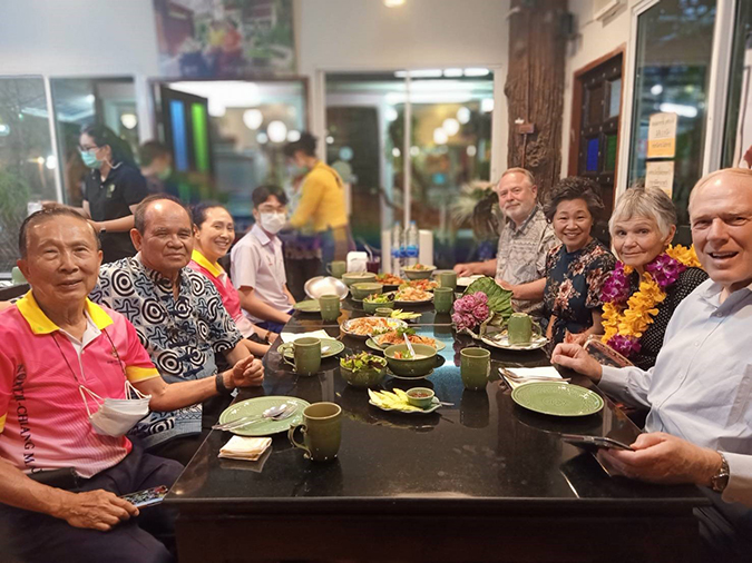 เมื่อดร.ลาวกลับจากภาคสนามท่านอธิการบดีดร.ณรงค์ ชวสินธุ์และ รองอธิการบดีอาจารย์ชุติมา ชวสินธุ์ ได้จัดเลี้ยงอาหารค่ำให้กับคณะของดร.ลาวอีกวาระหนึ่ง ที่ “ครัวอาจารย์สายหยุดและหมอทราย” ร้านอาหารที่มีชื่อเสียงเลื่องลือด้านอาหารไทยแท้แบบดั้งเดิม ที่ทางร้านใช้สโลแกนว่า “ อาหาร…ศิลปแห่งการใช้ชีวิต”ที่ช่างแสนจะเหมาะสมเหลือเกินเพราะอาการของทางร้านจัดแต่งประดิดประดอยอย่างสวยงามและแสนอร่อย