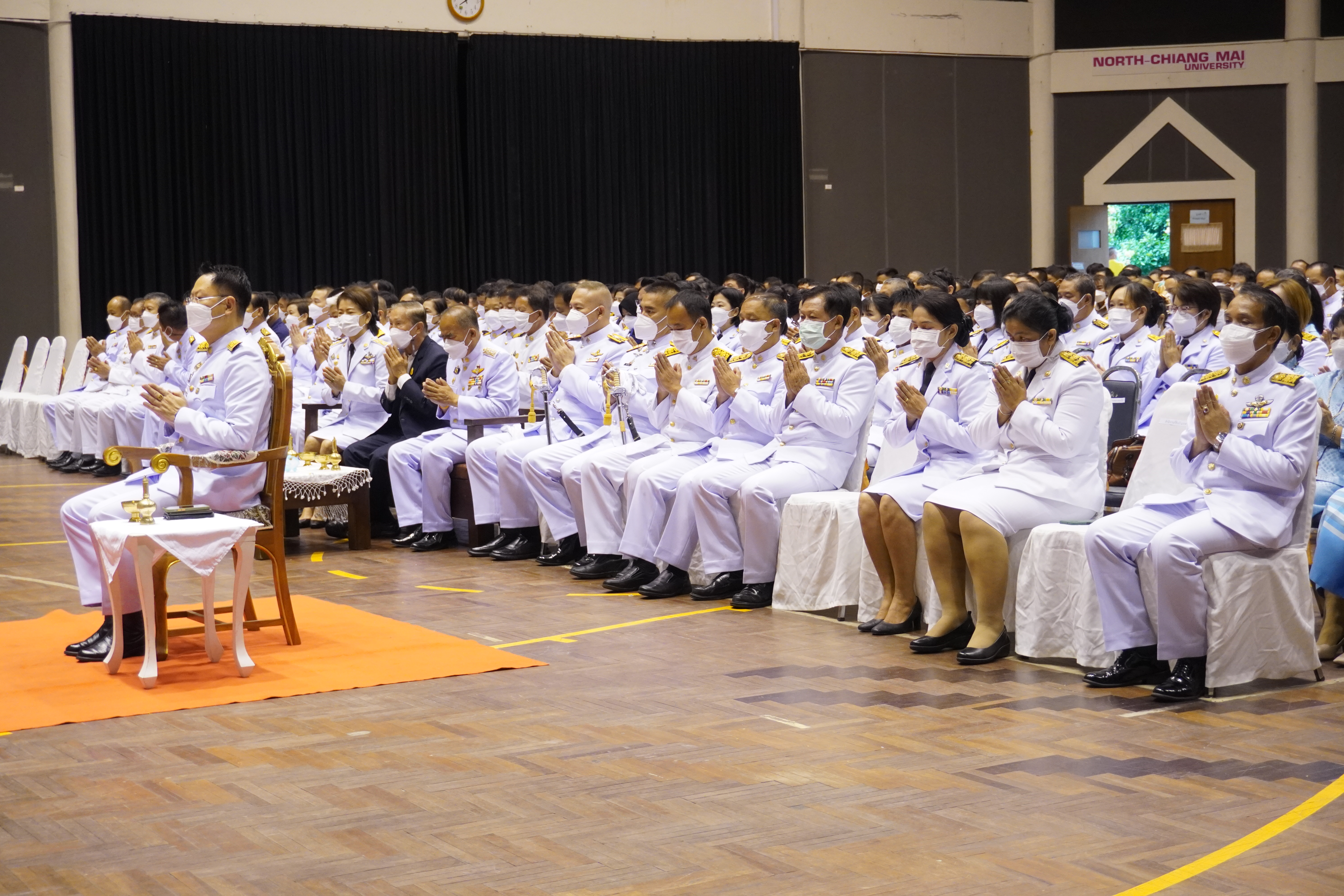 อาจารย์ณรงค์ ชวสินธุ์ อธิการบดีมหาวิทยาลัยนอร์ท-เชียงใหม่ นำคณาจารย์ เจ้าหน้าที่ นักศึกษา เข้าร่วม พิธีถวายพระพรชัยมงคล เนื่องในวันเฉลิมพระชนมพรรษา สมเด็จพระนางเจ้าสิริกิติ์ พระบรมราชินีนาถ พระบรมราชชนนีพันปีหลวง และวันแม่แห่งชาติ โดยมี ว่าที่ ร้อยตรี บำรุงเกียรติ วินัยพานิช นายอำเภอหางดง ประธานในพิธี พร้อมข้าราชการ พนักงานส่วนตำบล ร่วมถวายพระพร ณ ศูนย์ประชุมนานาชาติฯ มหาวิทยาลัยนอร์ท-เชียงใหม่