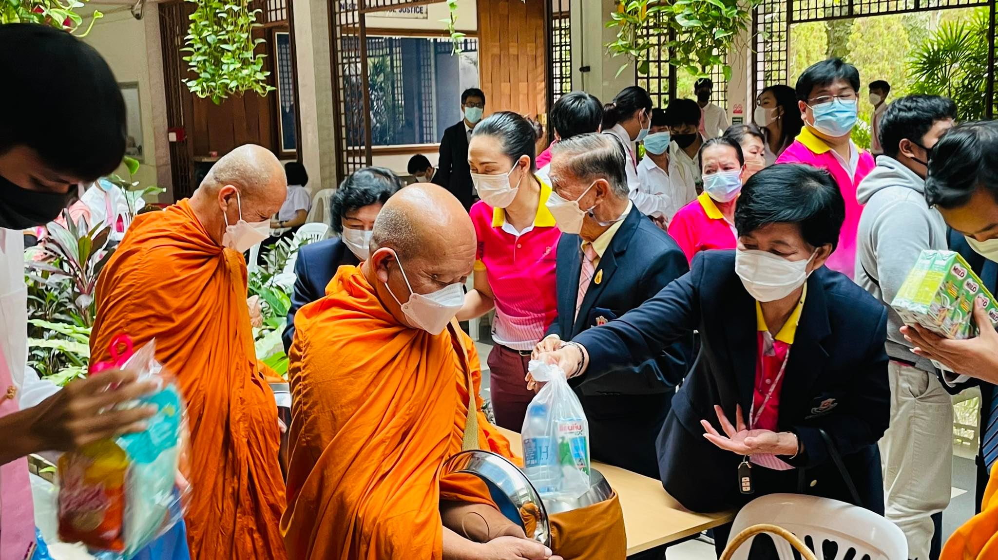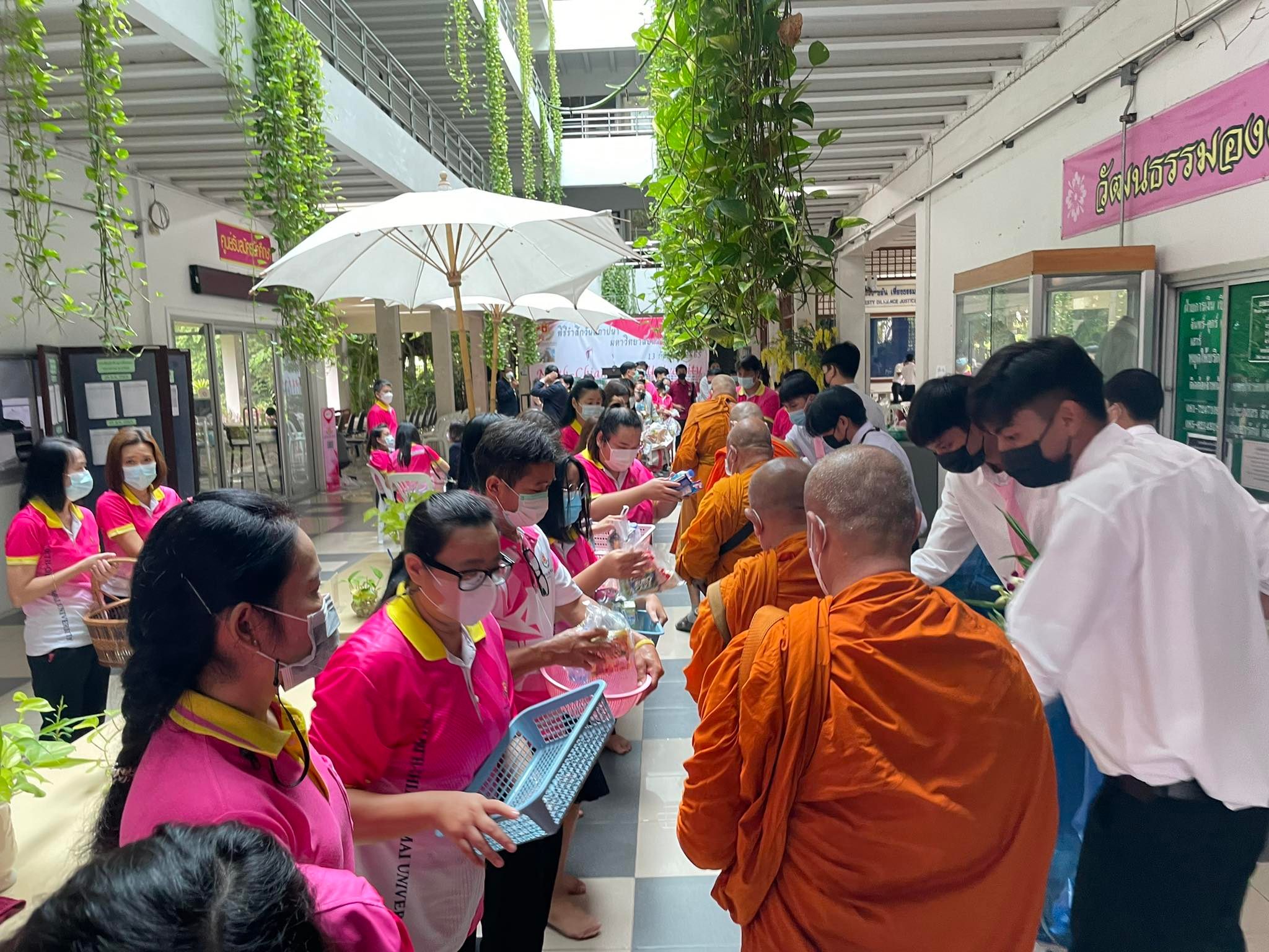 อาจารย์ณรงค์ ชวสินธุ์ อธิการบดี อาจารย์ชฏิลรัตน์ อัศววิวัฒน์พงศ์ รองอธิการบดี อาจารย์ชุติมา ชวสินธุ์ รองอธิการบดี พร้อมด้วยผู้บริหาร คณาจารย์ บุคลากร นักศึกษา เข้าร่วมทำบุญตักบาตร เนื่องในพิธีรำลึกวันสถาปนามหาวิทยาลัยนอร์ท-เชียงใหม่ ปีที่ 22