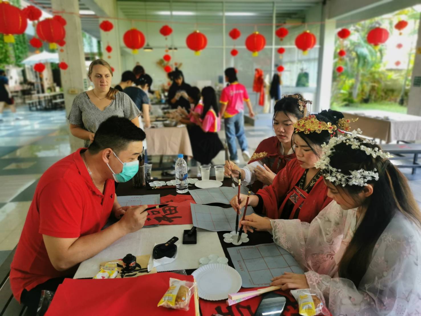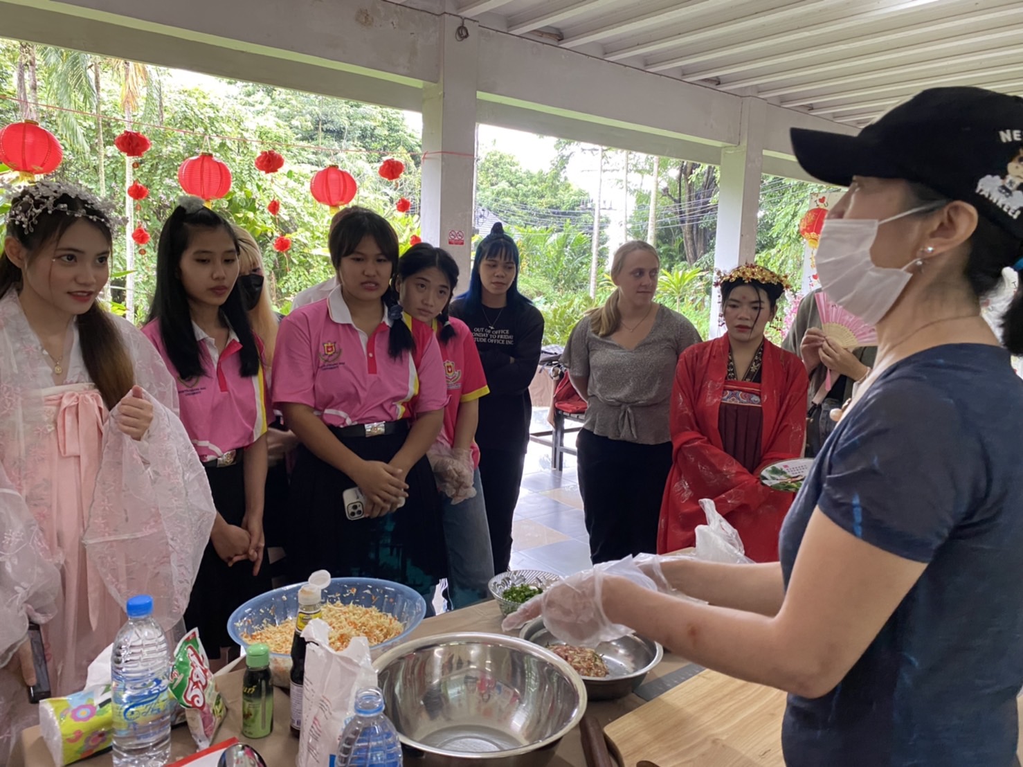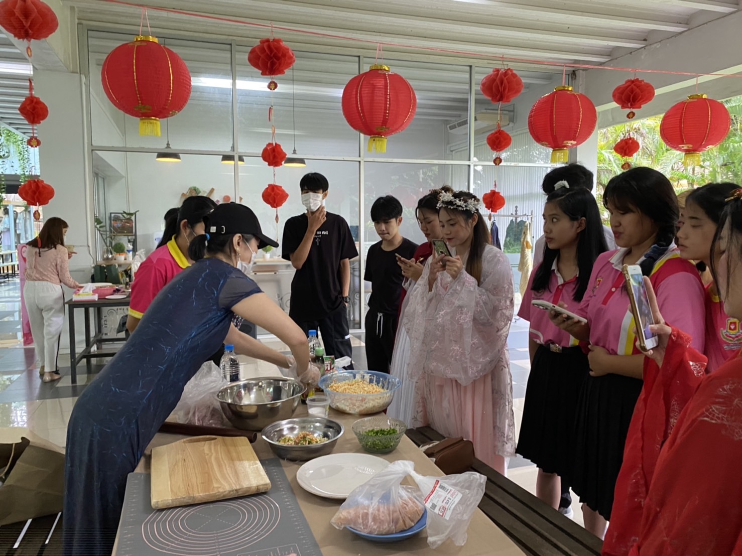 นักศึกษารายวิชาภาษาจีน ร่วมทำกิจกรรม "ท่องโลกภาษาจีน" โดยเข้าร่วมการสาธิตการทำอาหารจีน ขนมเกี๊ยว และสอนเขียนพู่กันจีน จัดโดย ภาควิชาศึกษาทั่วไป ร่วมกับสำนักกิจการนักศึกษา ณ ชั้น 1 สำนักงานอธิการบดี