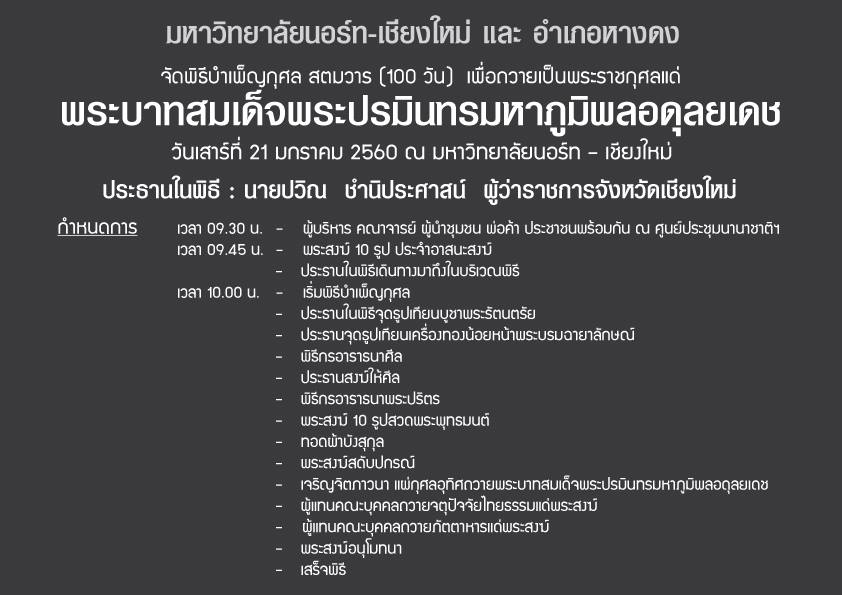 มหาวิทยาลัยนอร์ท-เชียงใหม่ และอำเภอหางดง จัดพิธีบำเพ็ญกุศลสตมวาร (๑๐๐ วัน)