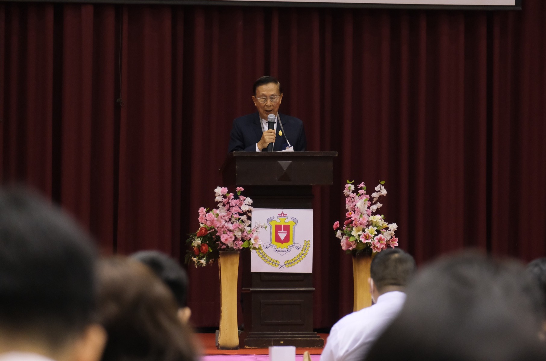 อาจารย์ ดร.ณรงค์ ชวสินธุ์ อธิการบดี กล่าวต้อนรับนักศึกษาใหม่ สู่รั้วชมพู-เหลือง ลูกอินทรี