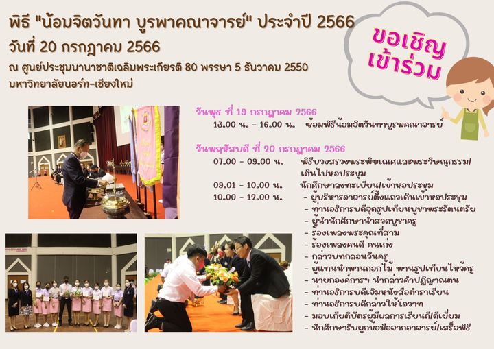 ขอเชิญเข้าร่วมพิธี "น้อมจิตวันทา บูรพาคณาจารย์" ประจำปีการศึกษา 2566 วันพฤหัสบดีที่ 20 กรกฎาคม 2566