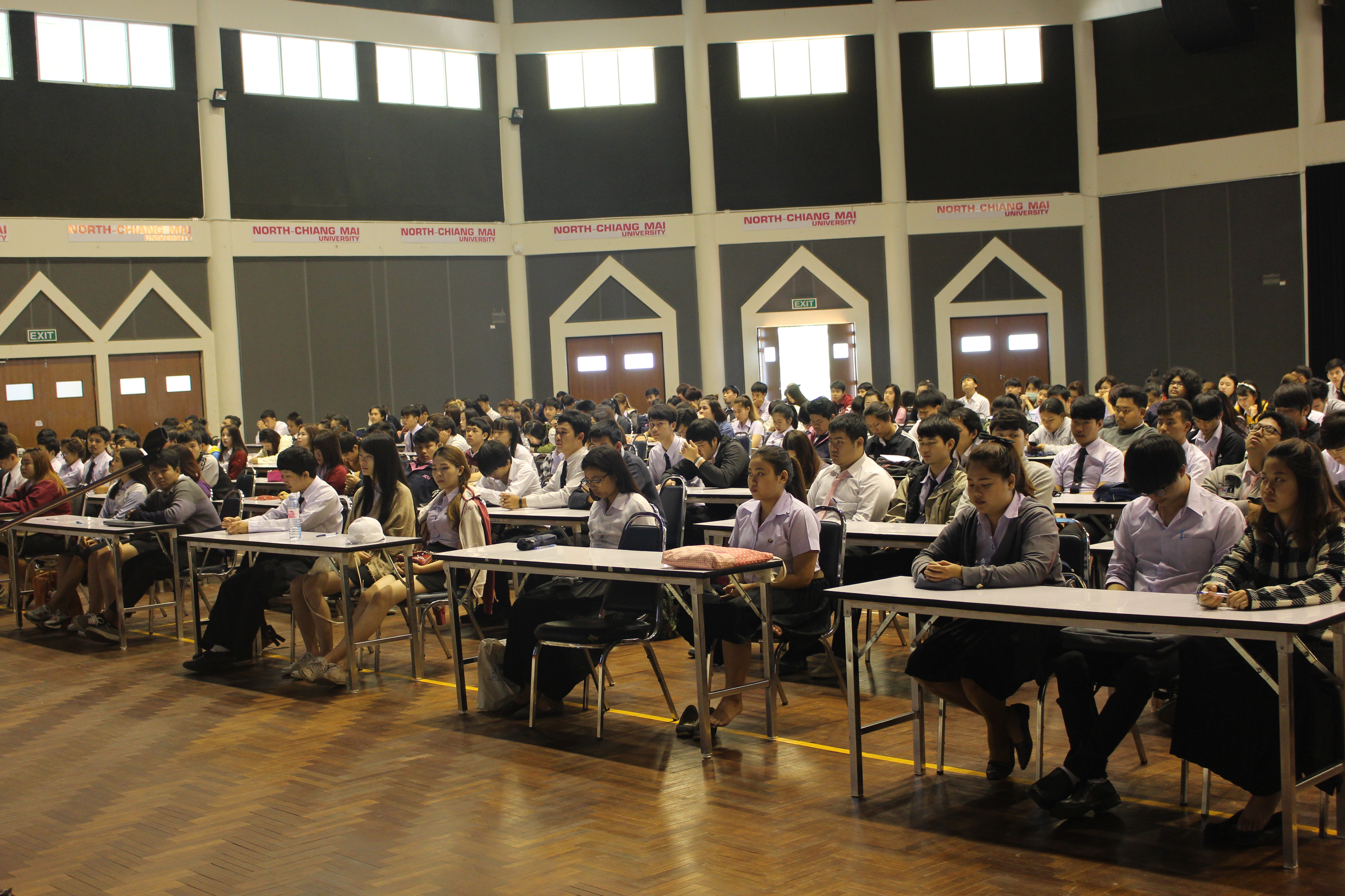 นักศึกษากู้ยืมเงินเพื่อการศึกษา(กยศ.)ชั้นปีที่1-4 มหาวิทยาลัยนอร์ท-เชียงใหม่ ร่วมเปิดการทำกิจกรรมจิตอาสาและเซ็นแบบยืนยันค่าเล่าเรียน ประจำภาคเรียนที่ 2 ปีการศึกษา 2559 โดย อาจารย์ชฎิลรัตน์ อัศววิวัฒน์พงศ์ รองอธิการบดี กล่าวเปิดงานและให้โอวาทแก่นักศึกษา ดร.สมบูรณ์ สู่ประเสริฐ ประธานภาคเหนือในมูลนิธิราชประชาสมาสัย อบรมให้ความรู้และสาธิตการเป็นจิตอาสา เพื่อให้สอดคล้องกับเกณฑ์การคัดเลือกนักศึกษากู้ยืมด้านจิตอาสาและตรงตามเจตนารมณ์ของมูลนิธิราชประชาสมาสัย ณ ศูนย์ประชุมนานาชาติอาคารเฉลิมพระเกียรติฯ มหาวิทยาลัยนอร์ท-เชียงใหม่