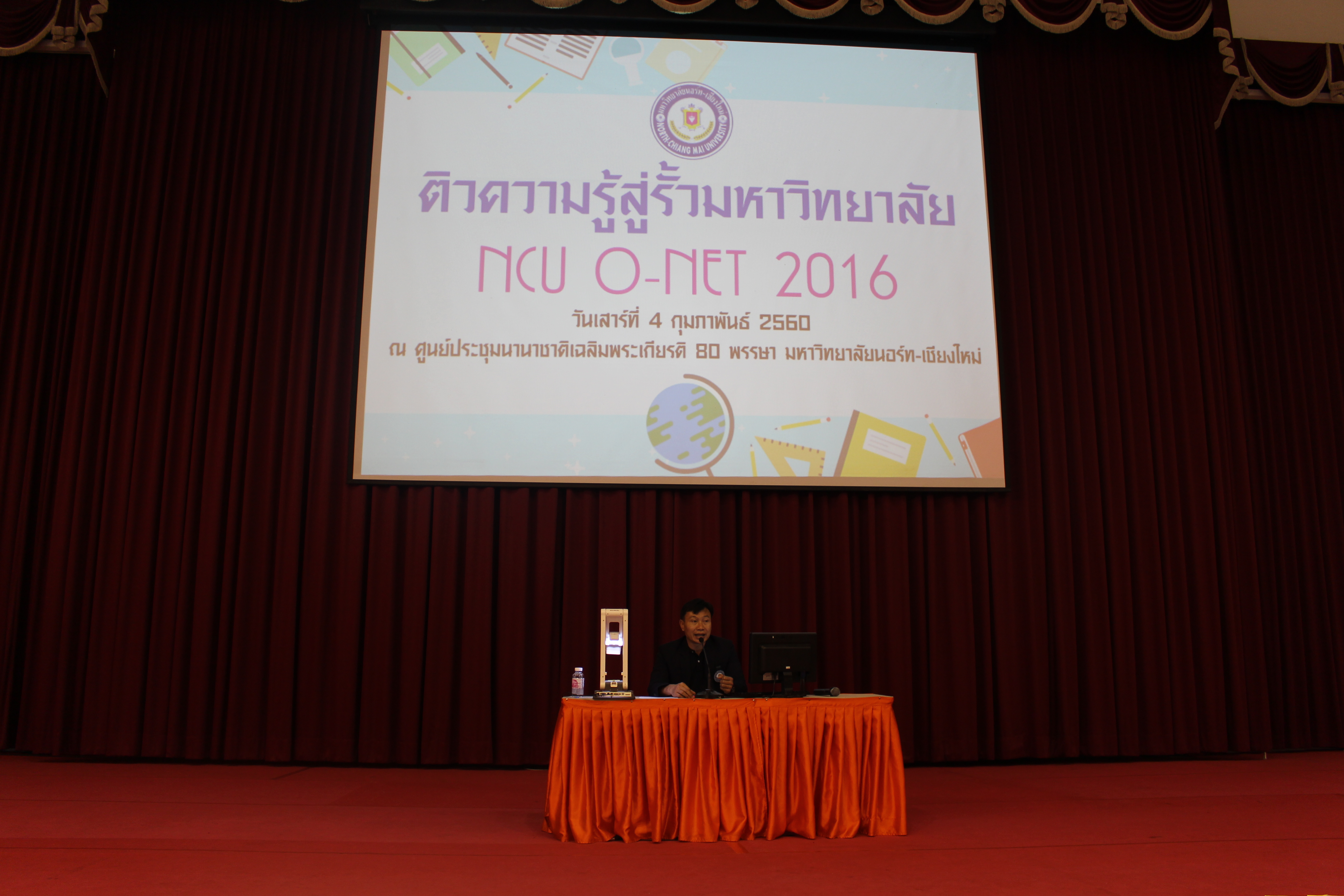 นักศึกษาชั้นมัธยมศึกษาปีที่ 6 ในจังหวัดเชียงใหม่และจังหวัดใกล้เคียง กว่า 300 คน ร่วมกิจกรรม "ติวความรู้สู่รั้วมหาวิทยาลัย O-NET 2016" โดยได้รับเกียรติจาก 2 ติวเตอร์ชื่อดังร่วมให้ความรู้และความสนุกสนานแก่นักศึกษาที่เข้าร่วมกิจกรรมดังกล่าว ท่านแรก อาจารย์รติ วงศ์สถาน (ครูเป็ด) อาจารย์ประจำสาขาวิศวกรรมไฟฟ้า คณะวิศวกรรมศาสตร์ มหาวิทยาลัยนอร์ท-เชียงใหม่ ติววิชาคณิตศาสตร์และวิชาวิทยาศสาตร์ ท่านที่สอง คุณครูอสนี เรืองงาม (ครูซิม) ติววิชาภาษาอังกฤษ ตลอดจนอาจารย์แต่ละคณะให้ข้อมูลการศึกษาต่อระดับอุดมศึกษาในครั้งนี้ด้วย ณ ศูนย์ประชุมนานาชาติอาคารเฉลิมพระเกียรติฯมหาวิทยาลัยนอร์ท-เชียงใหม่