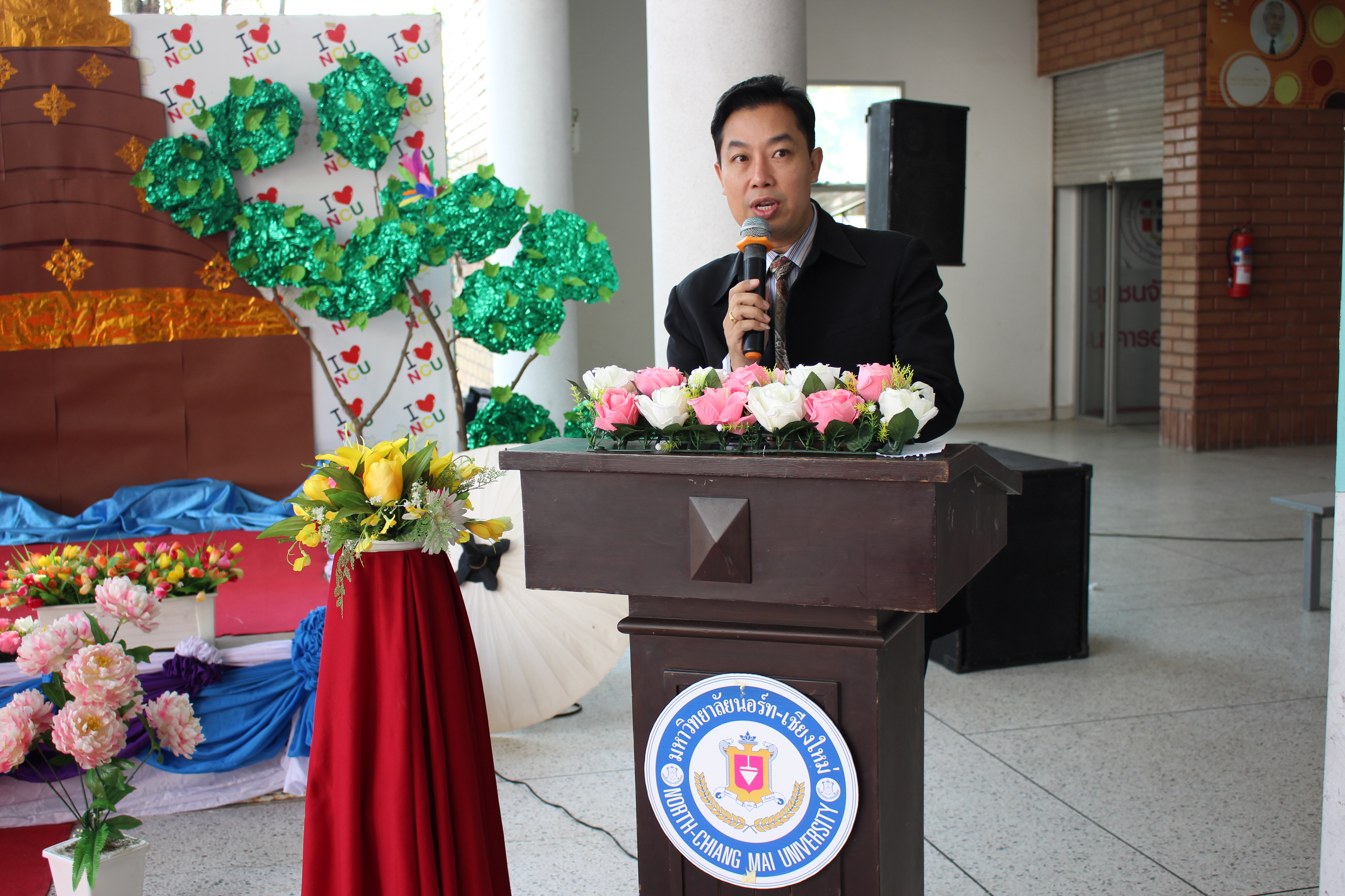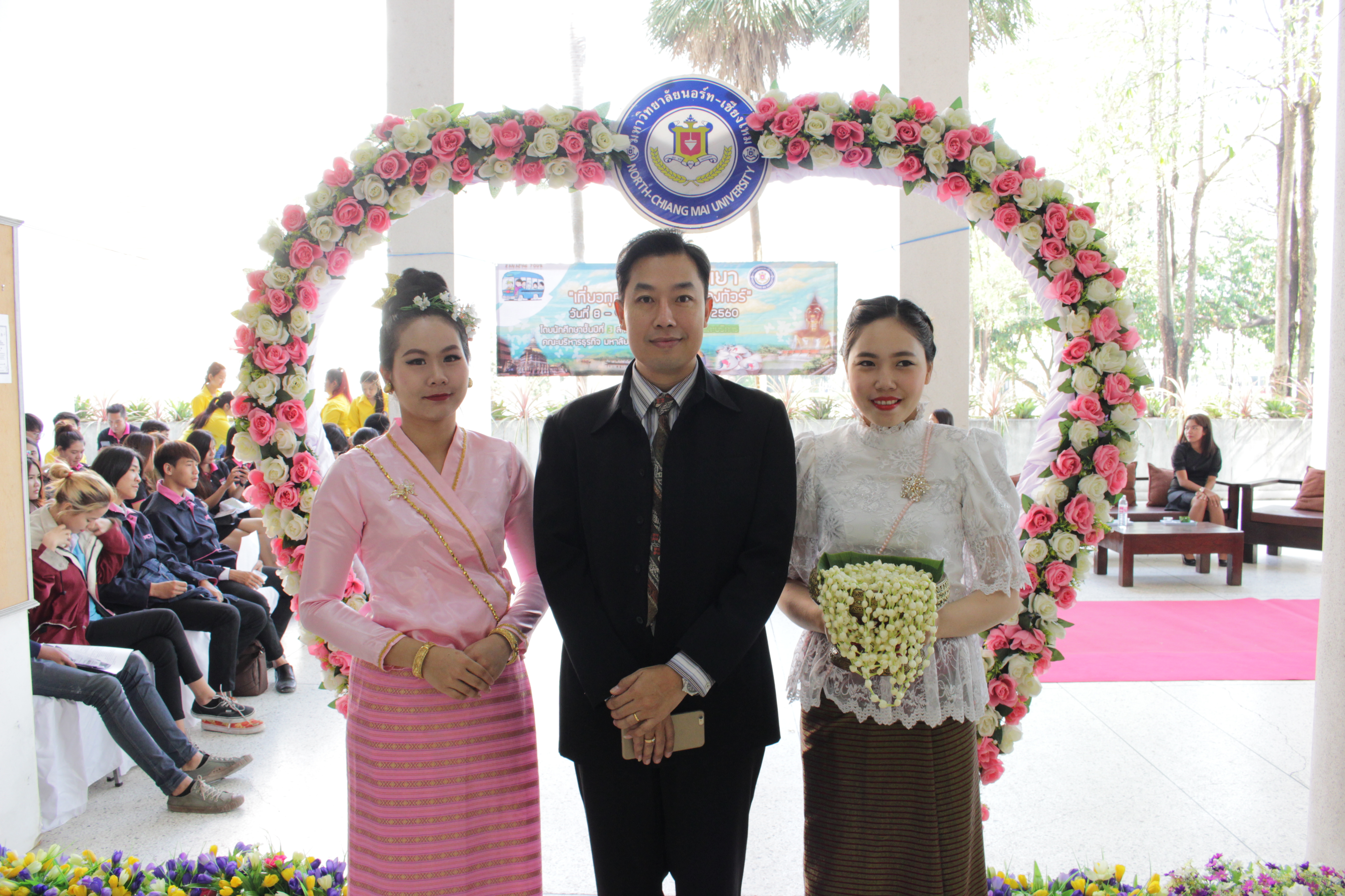 รองศาสตราจารย์ ดร.พิธากรณ์ ธนิตเบญจสิทธิ์ คณบดีคณะบริหารธุรกิจ มหาวิทยาลัยนอร์ท-เชียงใหม่ ประธานในพิธีเปิดบริษัทนำเที่ยวจำลอง บริษัท ปัง ปัง ทัวร์ เที่ยวหรรษาหน้าร้อน แม่ฮ่องสอน-ปาย จัดโปรแกรมทัวร์ อุทยานแห่งชาติออบหลวง สะพานประวัติศาสตร์ปาย ถนนคนเดินปายและหมู่บ้านจีนยูนนาน ของนักศึกษาสาขาวิชาการจัดการการท่องเที่ยวและบริษัท กันเองทัวร์ ทัวร์ เที่ยว ทุกมุม สุดคุ้มกันเองทัวร์ จัดโปรแกรมทัวร์ วัดพระธาตุลำปางหลวง พิพิธภัณฑ์เซรามิค แพกิ่วลม วัดพระธาตุศรีคมคำ และวัดอนันตโล กลางกว๊านพะเยา ในจังหวัดลำปางและพะเยาของนักศึกษาสาขาวิชาการจัดการ คณะบริหารธุรกิจมหาวิทยาลัยนอร์ท-เชียงใหม่ เพื่อให้นักศึกษาได้ใช้ความรู้เกี่ยวกับการจัดการการนำเที่ยว การจัดโปรแกรมทัวร์ และได้ฝึกปฎิบัติงานเสมือนบริษัทนำเที่ยวจริงเป็นประสบการณ์ในการนำไปใช้ในอนาคตต่อไป โดยมีคณาจารย์ บุคลากรและนักศึกษาให้ความสนใจร่วมงานเป็นจำนวนมาก ณ บริเวณโรงอาหารมหาวิทยาลัยนอร์ท-เชียงใหม่