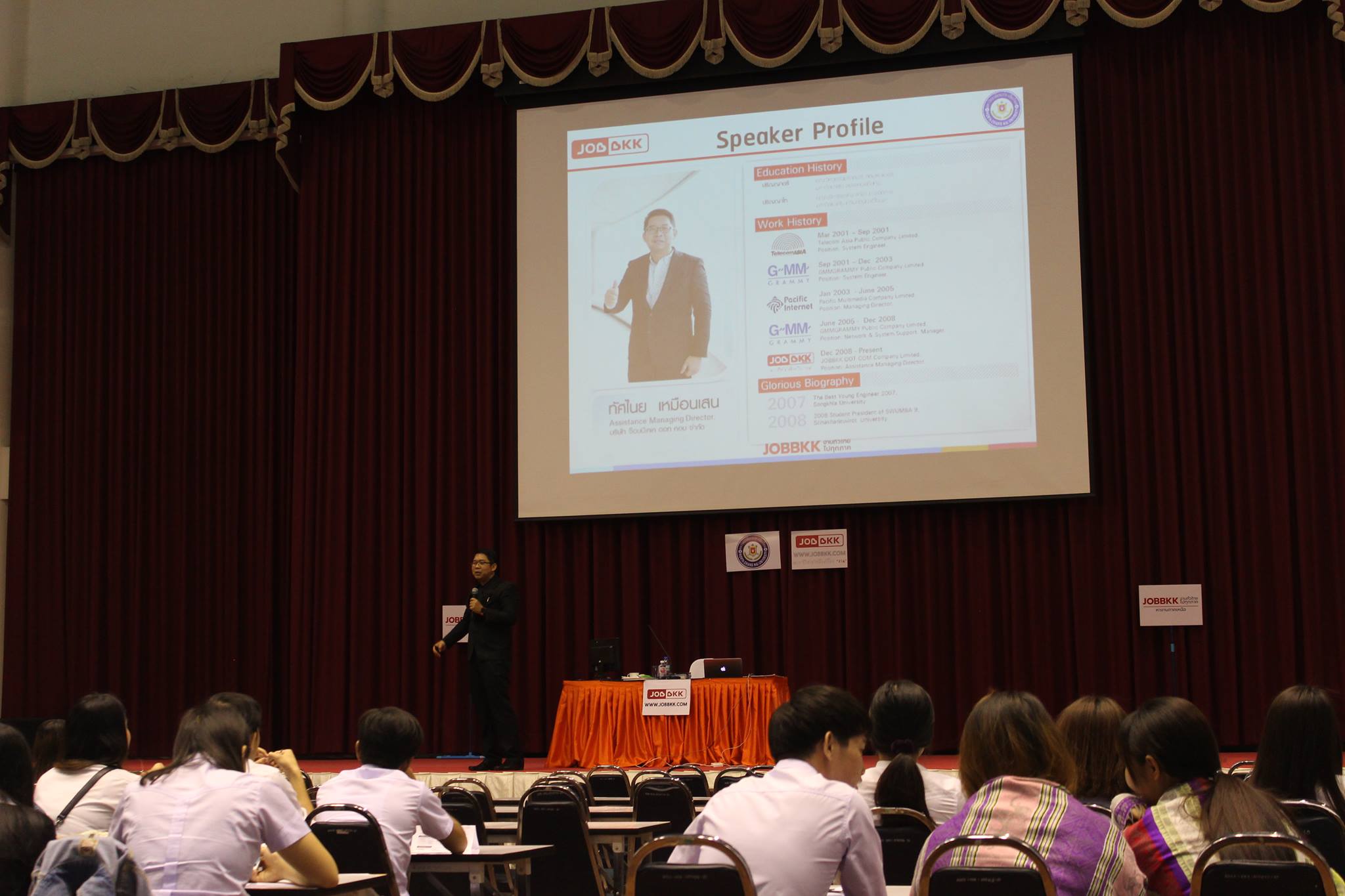 หน้าแรก >> คุณทัศไนย เหมือนเสน จากบริษัท Job BKK บรรยายหัวข้อ “เตรียมพร้อม วางแผน จะทำอะไร และทำอย่างไร ในยุค Thailand 4.0 (Start Up Yourself “Read for Thailand 4.0”)”
