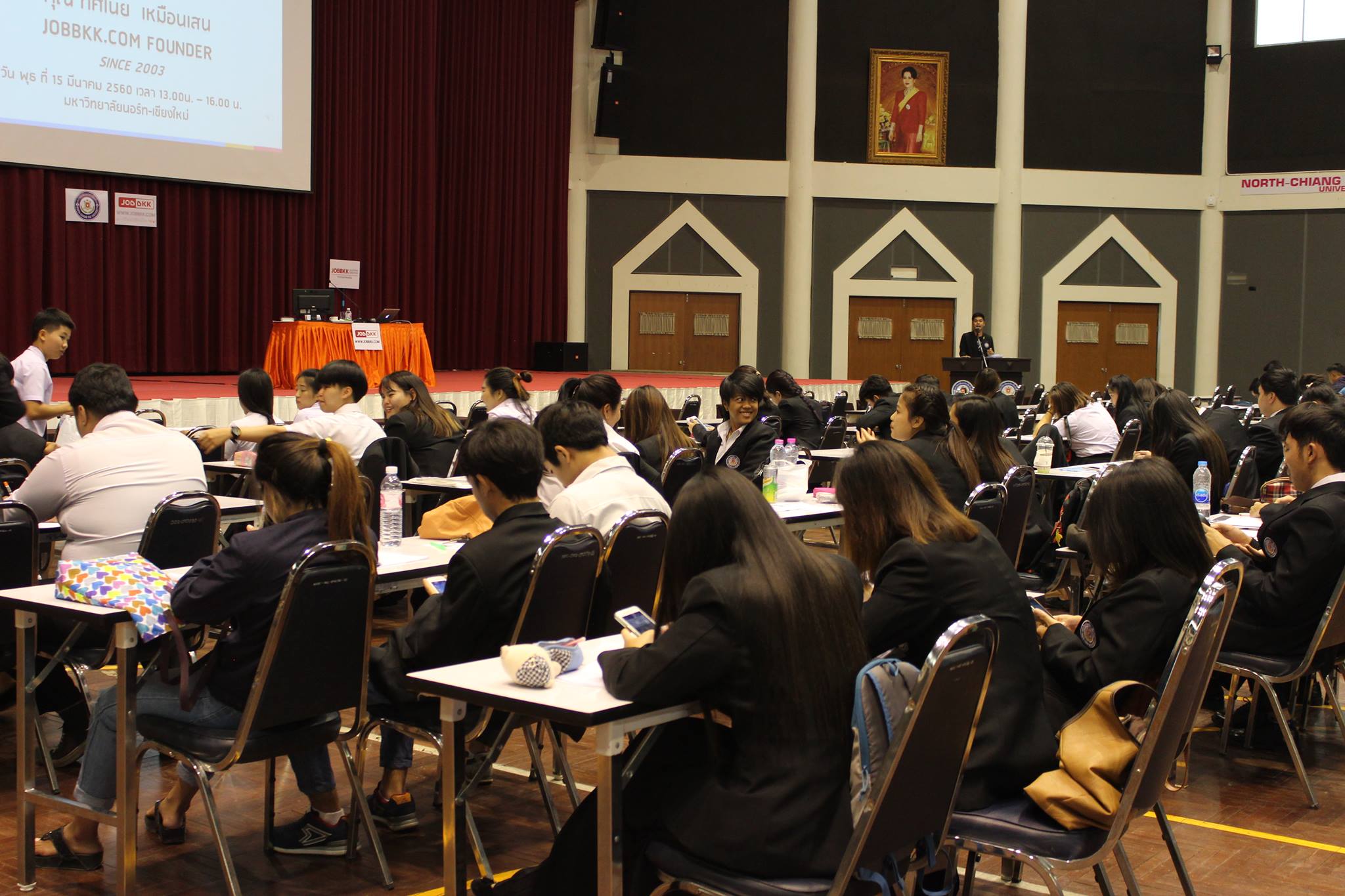 ภาควิชาศึกษาทั่วไป คณะสังคมศาสตร์และศิลปศาสตร์ ร่วมกับศูนย์สหกิจศึกษาและแนะแนวการทำงาน มหาวิทยาลัยนอร์ท-เชียงใหม่ จัดบรรยายพิเศษหัวข้อ “เตรียมพร้อม วางแผน จะทำอะไร และทำอย่างไร ในยุค Thailand 4.0 (Start Up Yourself “Read for Thailand 4.0”)” โดยได้รับเกียรติจากคุณทัศไนย เหมือนเสน จากบริษัท Job BKK เป็นวิทยากรพิเศษบรรยายแก่นักศึกษาที่ออกปฏิบัติงานจริงและนักศึกษาชั้นปีที่ 4 ทุกสาขาวิชา ทั้งนี้เพื่อเป็นการเตรียมความพร้อมก่อนจะมีการออกปฏิบัติงานจริงและเพื่อให้เกิดความมั่นใจในการก้าวเข้าสู่การทำงานได้อย่างสมบูรณ์ ณ ศูนย์ประชุมนานาชาติ อาคารเฉลิมพระเกียรติฯ มหาวิทยาลัยนอร์ท-เชียงใหม่