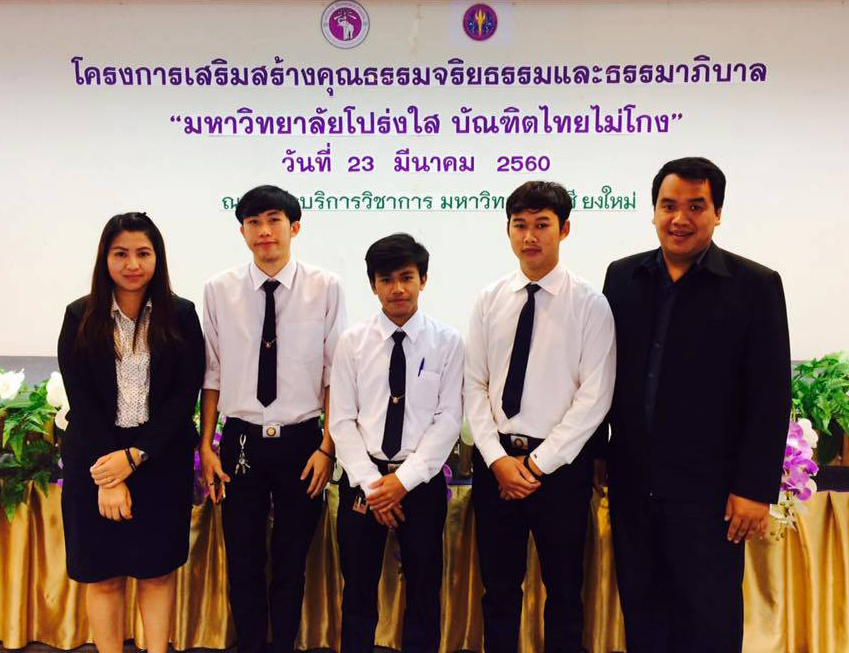 นายวีระศักดิ์ สายกุณาและนางสาวรุ่งทิวา เต็มแว่น เจ้าหน้าที่สำนักกิจการนักศึกษา นำตัวแทนนักศึกษามหาวิทยาลัยนอร์ท – เชียงใหม่ เข้าร่วมโครงการเสริมสร้างคุณธรรมจริยธรรมและธรรมาภิบาล “มหาวิทยาลัยโปร่งใส บัณฑิตไทยไม่โกง” ณ สำนักบริการวิชาการ มหาวิทยาลัยเชียงใหม่