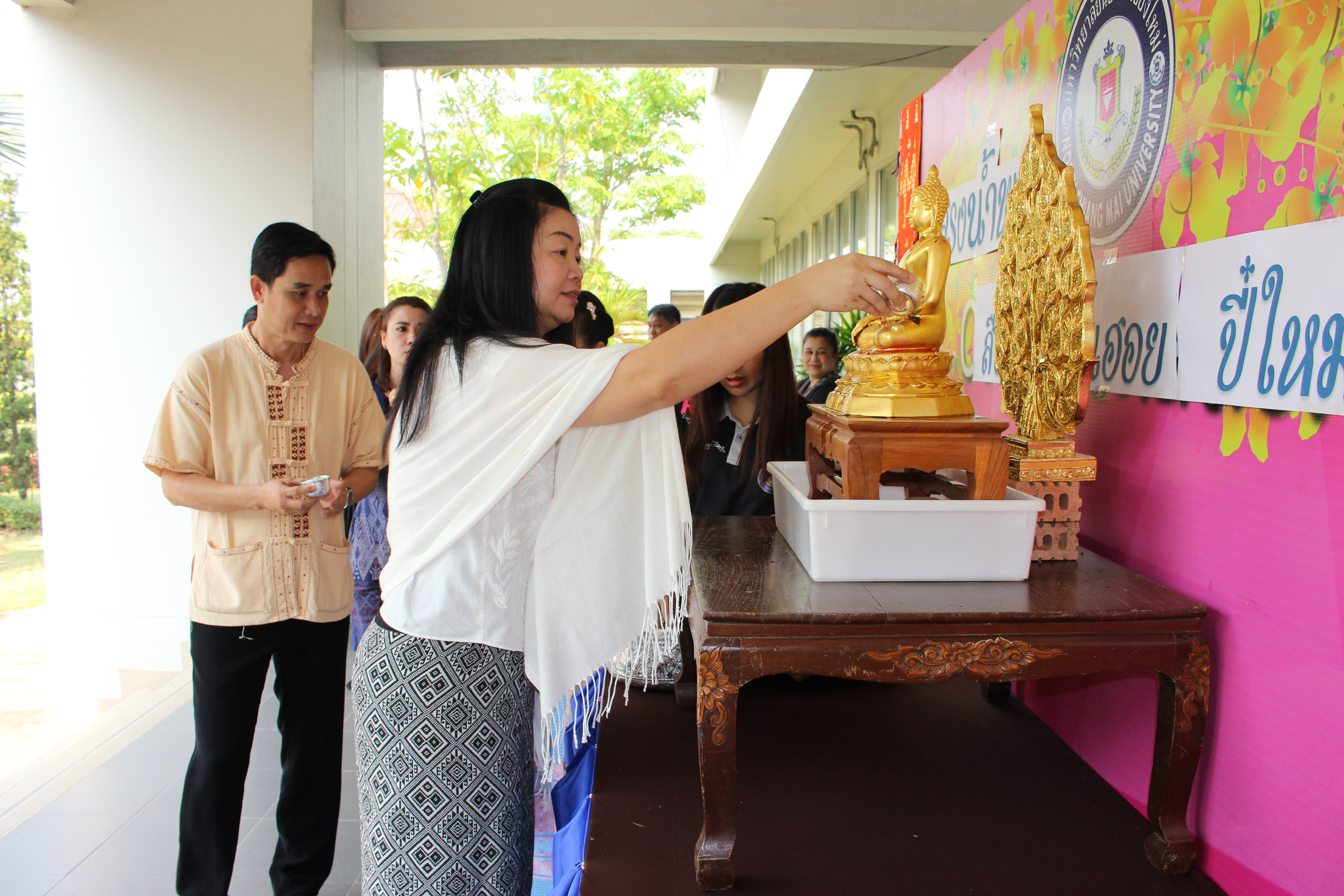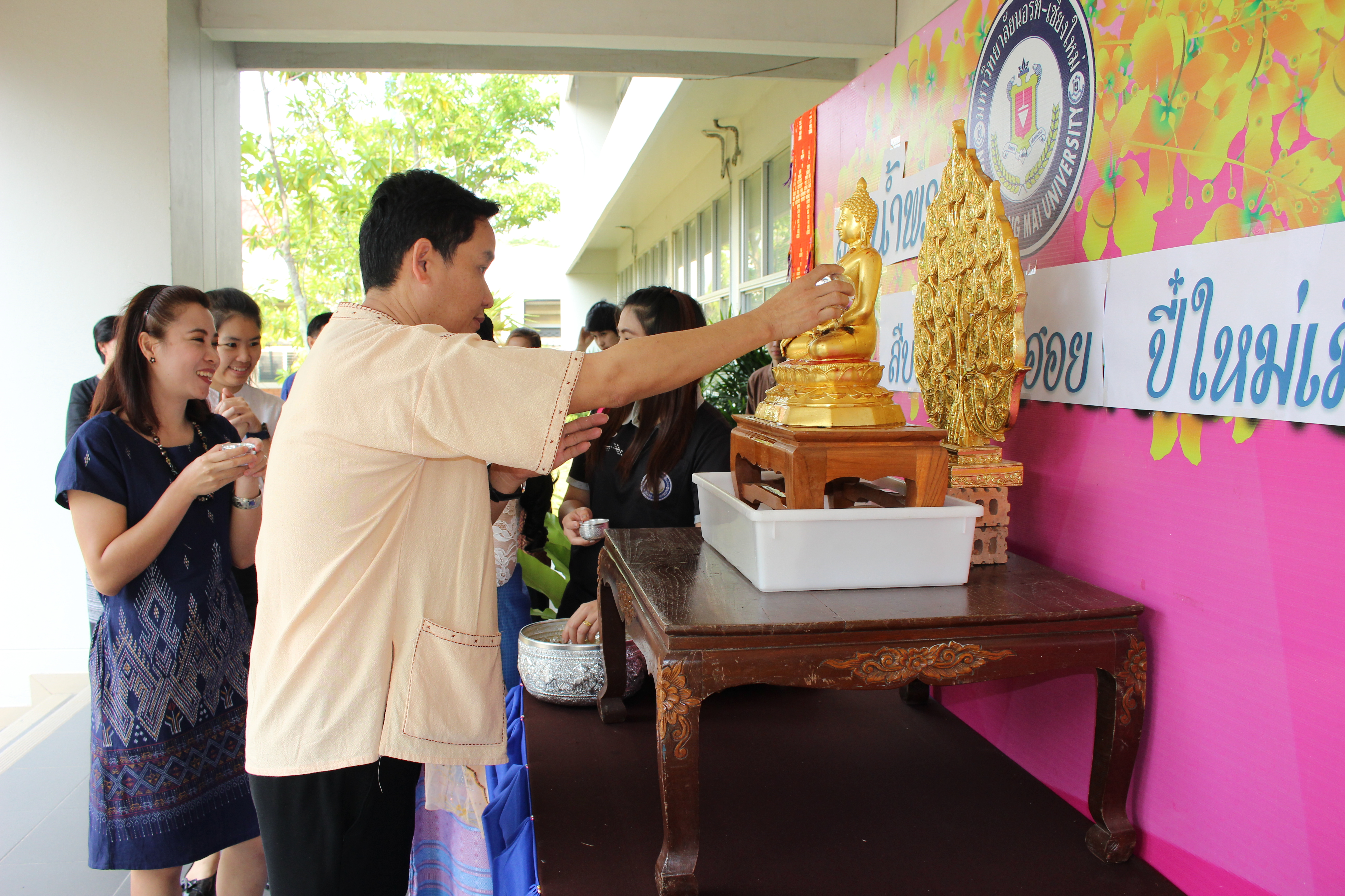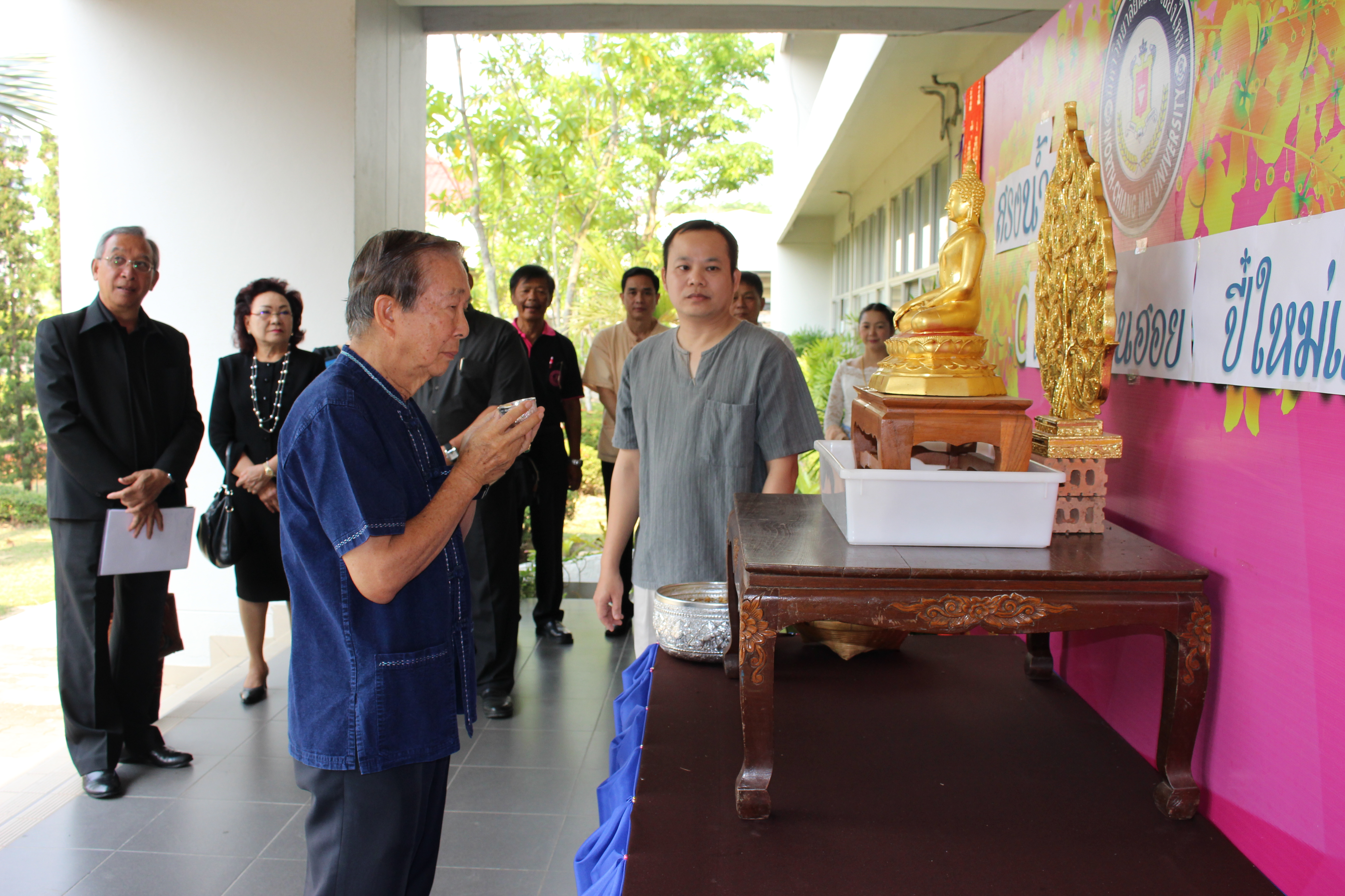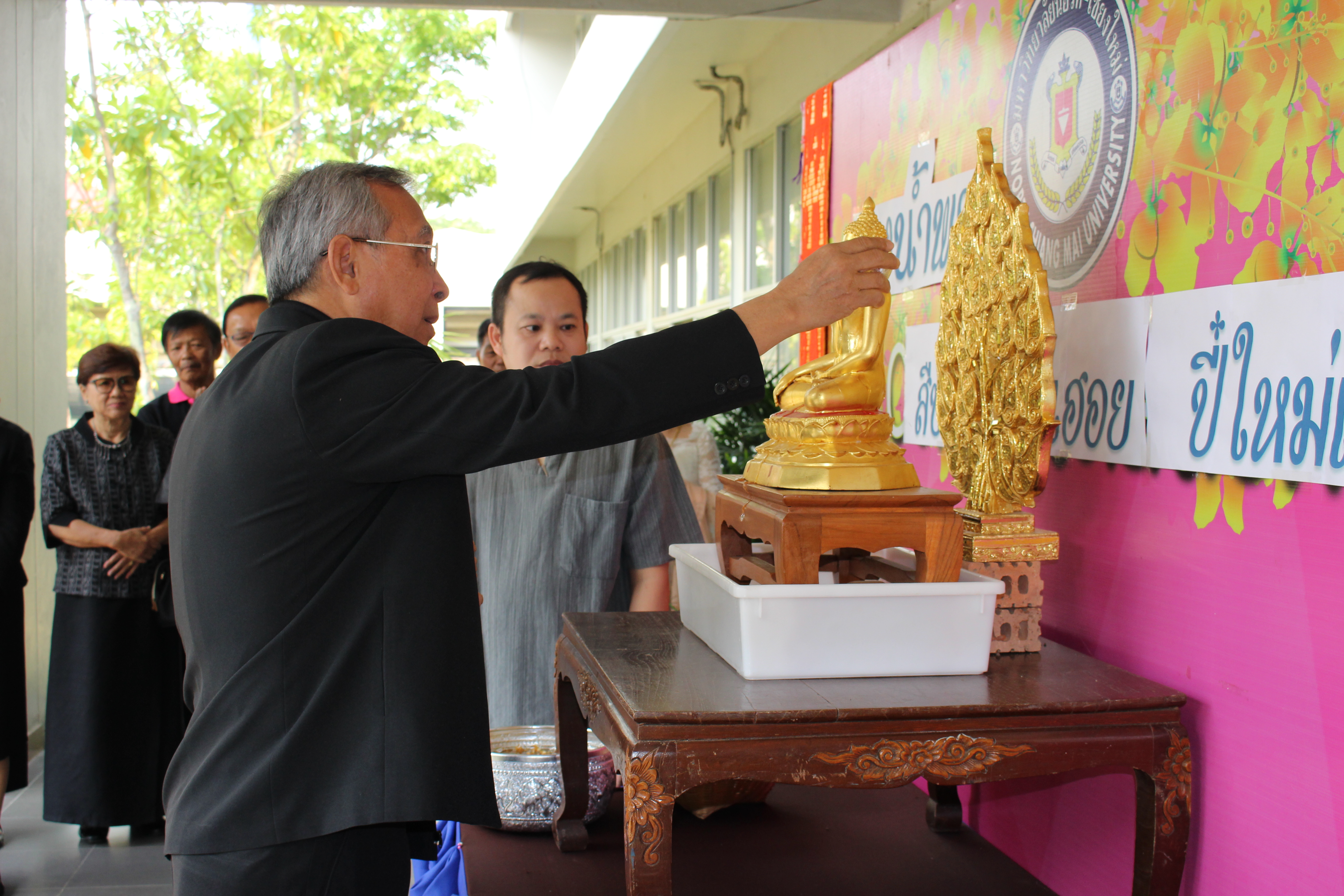 อาจารย์ณรงค์ ชวสินธุ์ อธิการบดี ผู้บริหาร คณาจารย์และเจ้าหน้าที่มหาวิทยาลัยนอร์ท-เชียงใหม่ ร่วมสรงน้ำพระพุทธรูป เพื่อเป็นสิริมงคลเนื่องในเทศกาลปี๋ใหม่เมือง ณ อาคารสำนักงานอธิการบดี