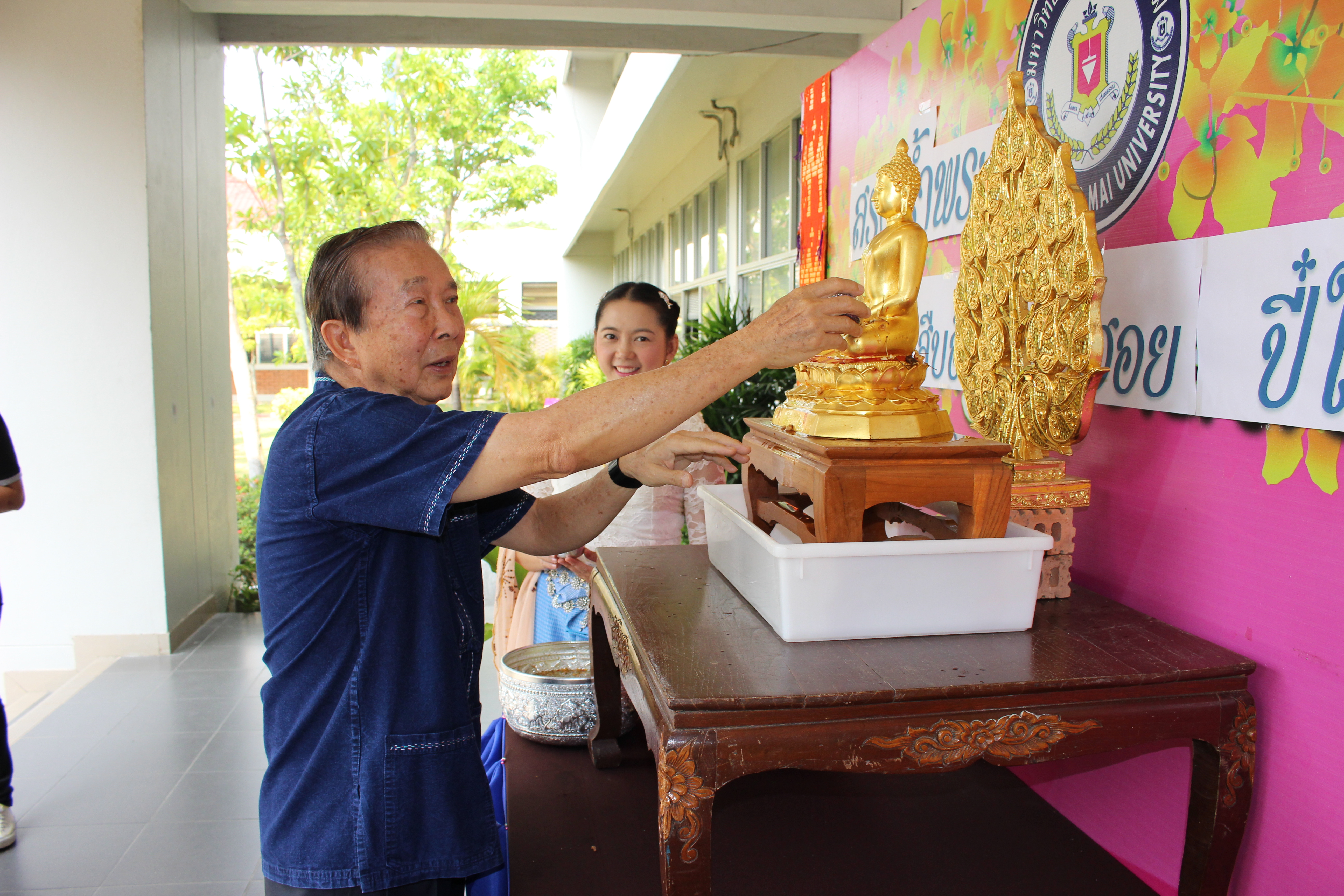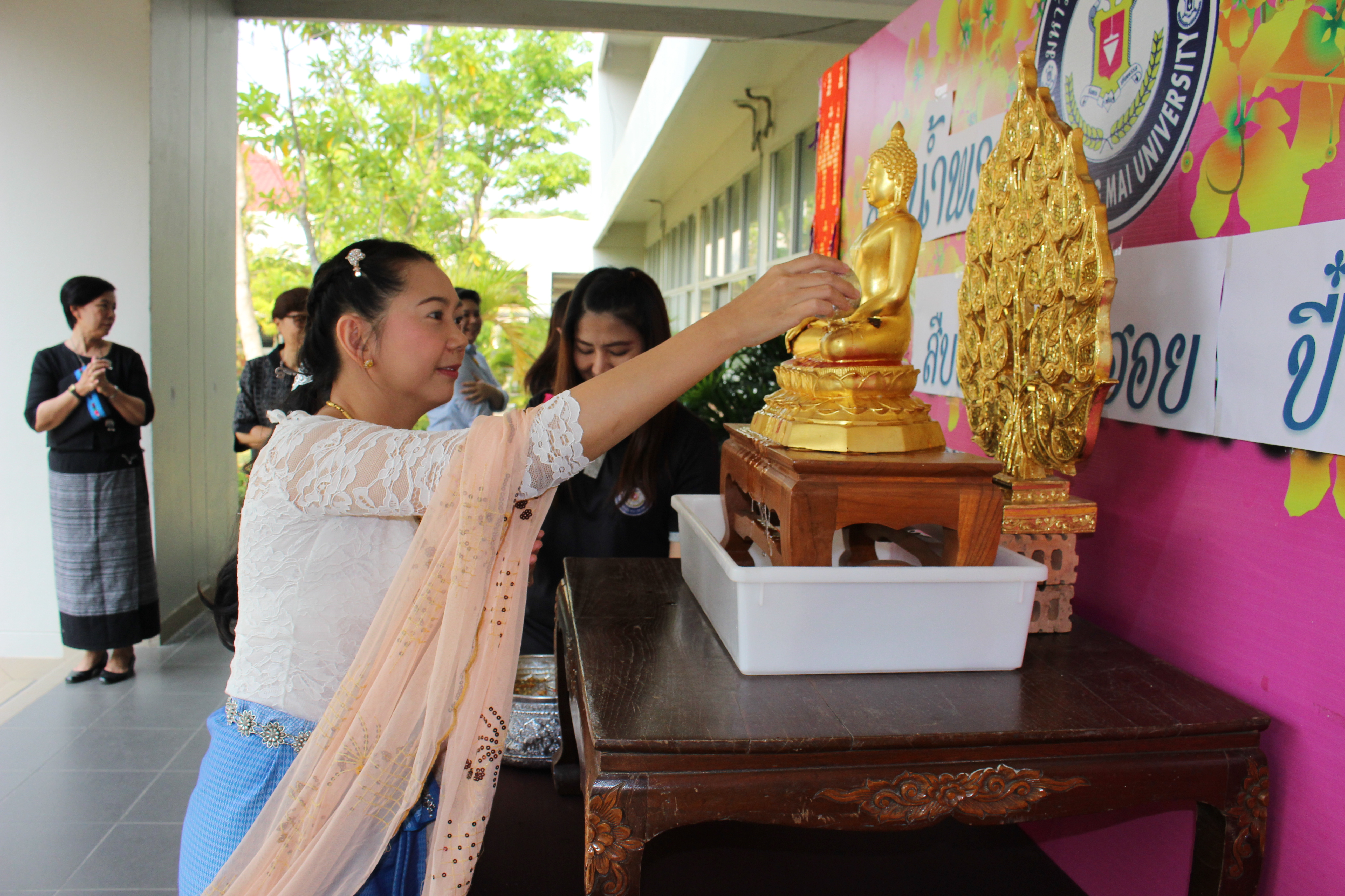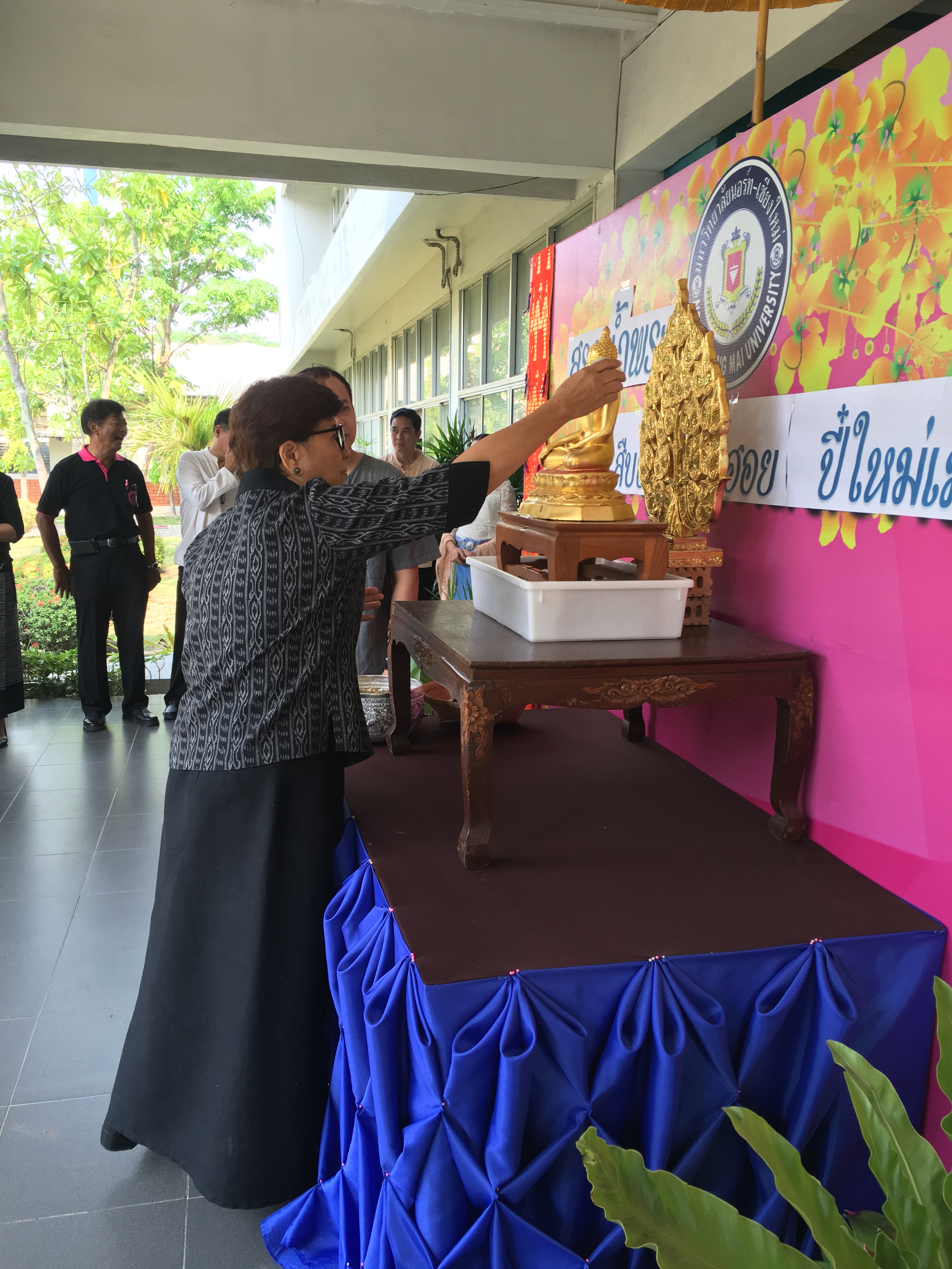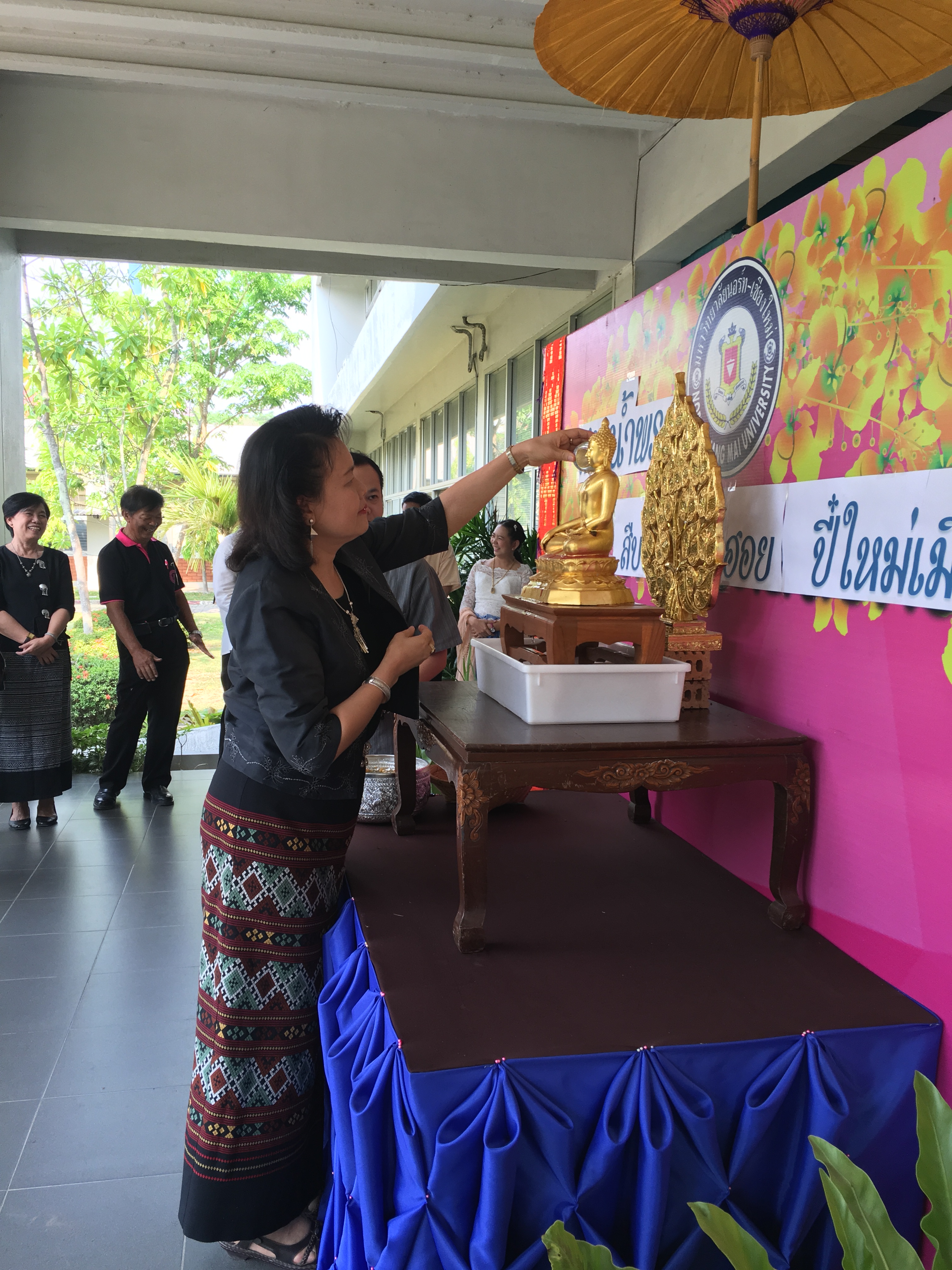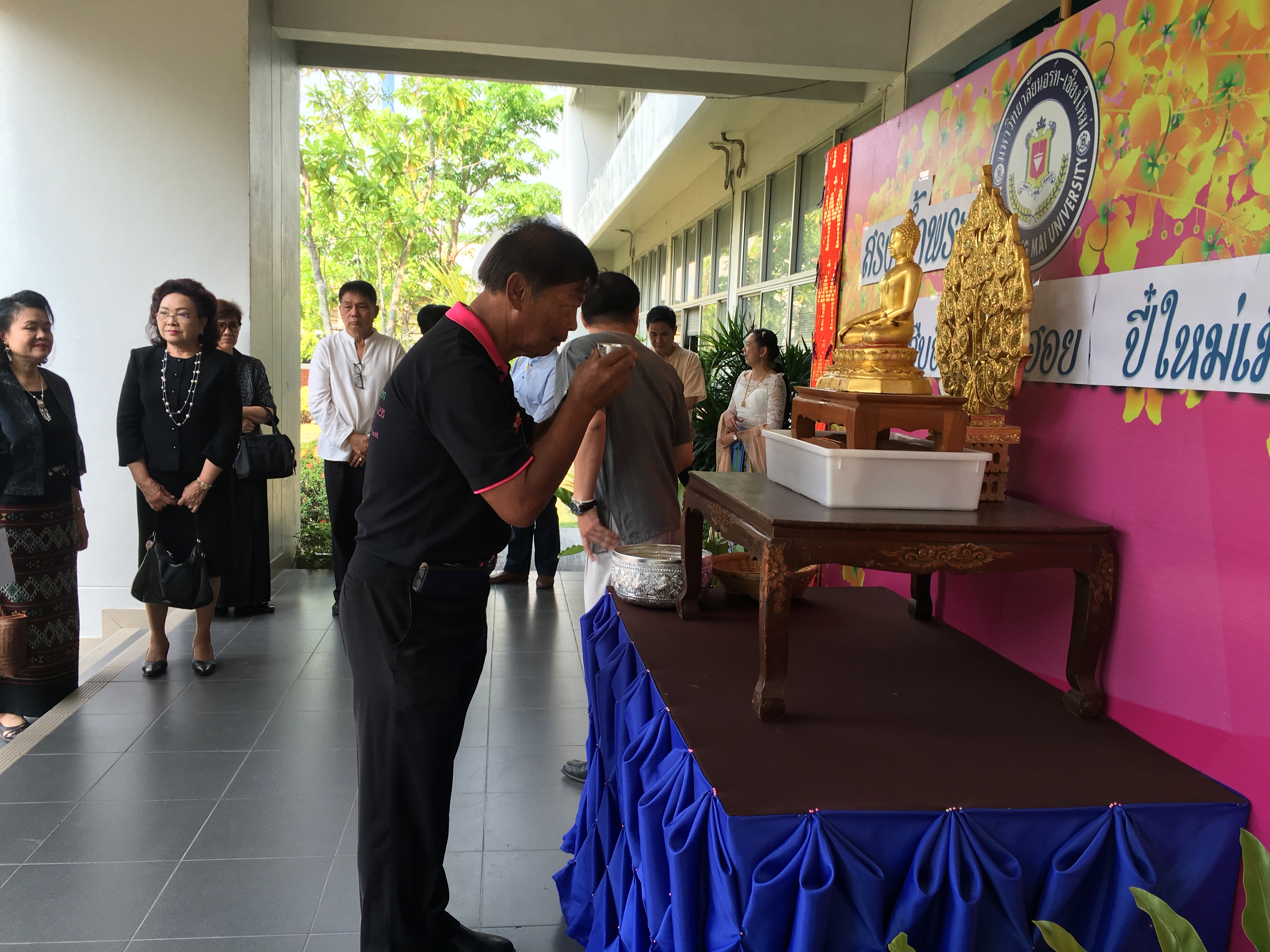 อาจารย์ณรงค์ ชวสินธุ์ อธิการบดี ผู้บริหาร คณาจารย์และเจ้าหน้าที่มหาวิทยาลัยนอร์ท-เชียงใหม่ ร่วมสรงน้ำพระพุทธรูป เพื่อเป็นสิริมงคลเนื่องในเทศกาลปี๋ใหม่เมือง ณ อาคารสำนักงานอธิการบดี