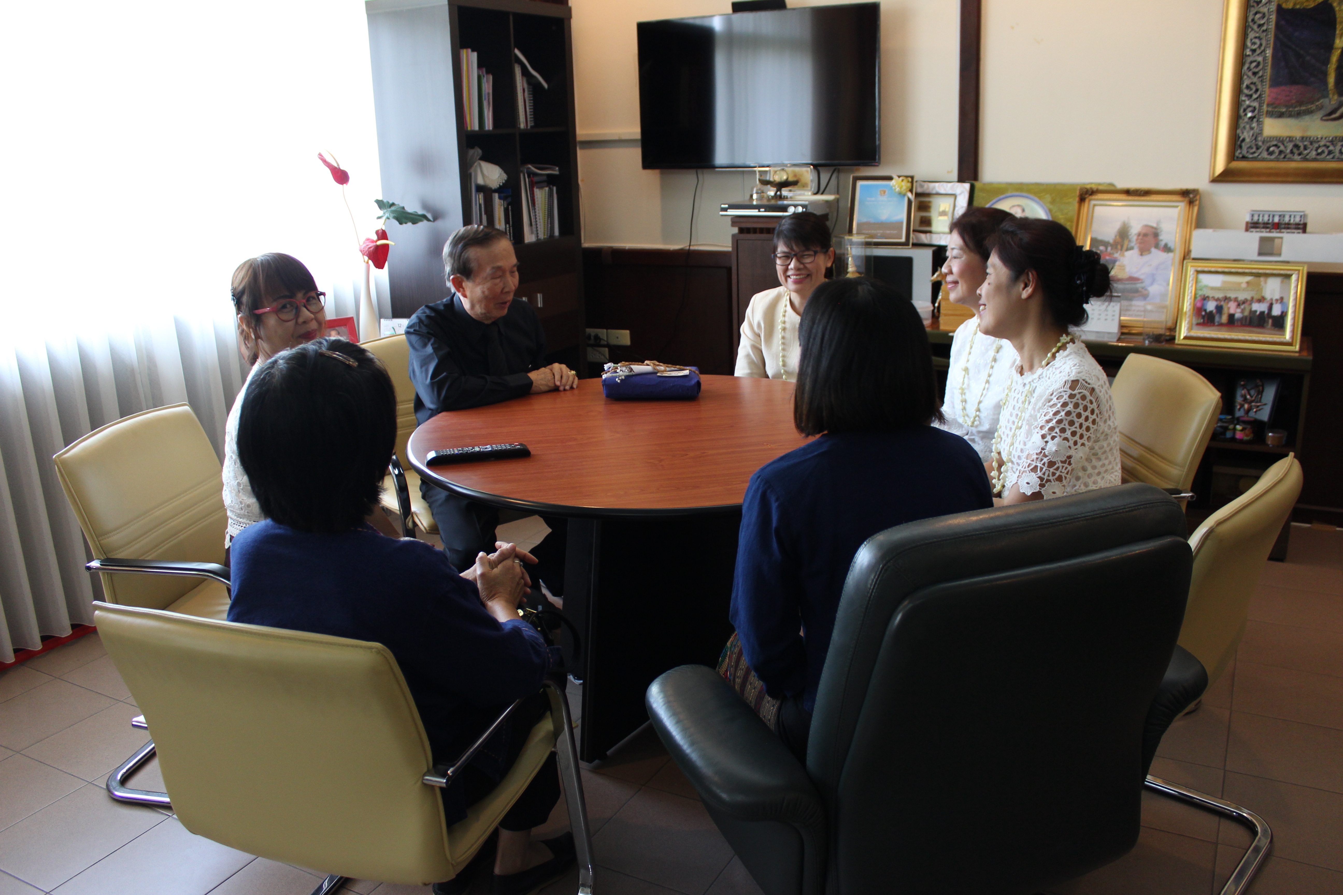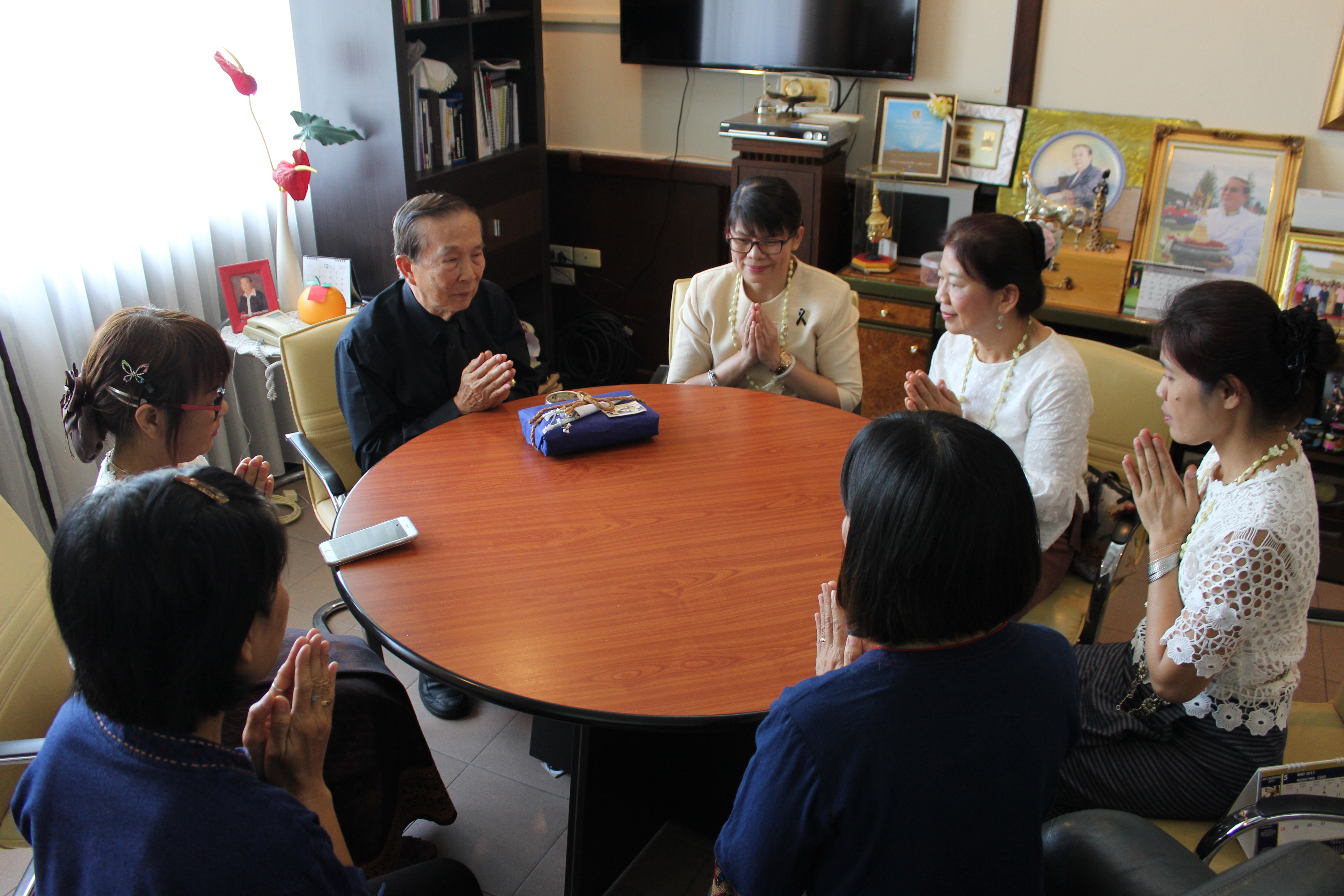 แพทย์หญิงนลินทิพย์ ธรรมฤกษ์ฤทธิ์ ผู้อำนวยการโรงพยาบาลหางดงและคณะ ร่วมสระเกล้าดำหัว อาจารย์ณรงค์ ชวสินธุ์ อธิการบดีมหาวิทยาลัยนอร์ท-เชียงใหม่ เนื่องในเทศกาลปี๋ใหม่เมือง เพื่อความเป็นสิริมงคล ณ ห้องรับรอง มหาวิทยาลัยนอร์ท-เชียงใหม่