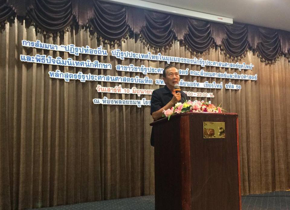 อาจารย์ณรงค์ ชวสินธุ์ อธิการบดีมหาวิทยาลัยนอร์ท-เชียงใหม่ เป็นประธานและกล่าวให้โอวาทในพิธีปัจฉิมนิเทศนักศึกษาสาขาวิชารัฐประศาสนศาสตร์ คณะสังคมศาสตร์และศิลปศาสตร์ มหาวิทยาลัยนอร์ท-เชียงใหม่ ปีการศึกษา 2559 ณ ห้องพลอยชมพู โรงแรมกรีนเลครีสอร์ท เชียงใหม่